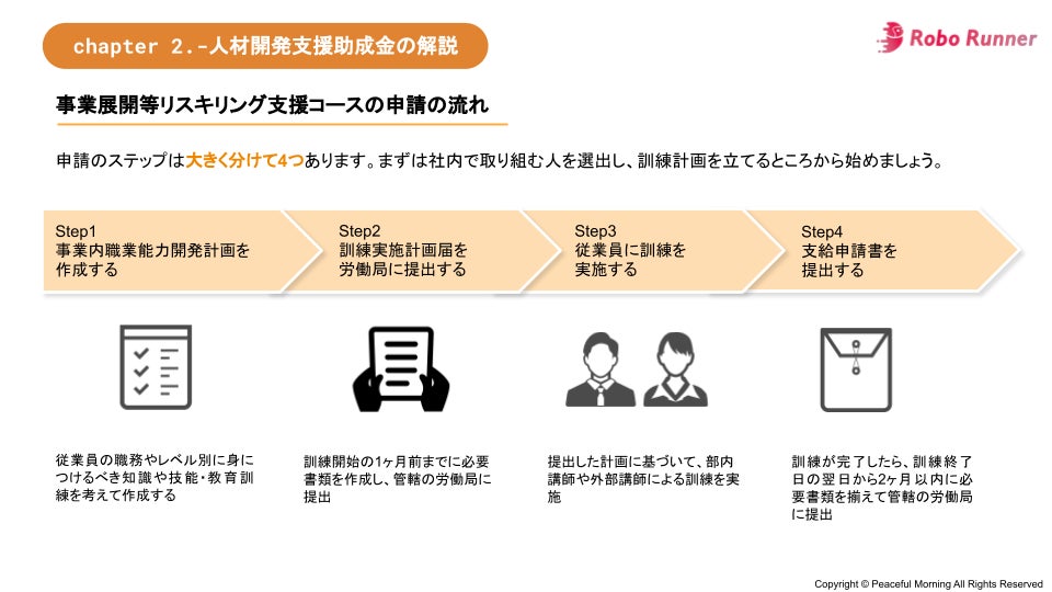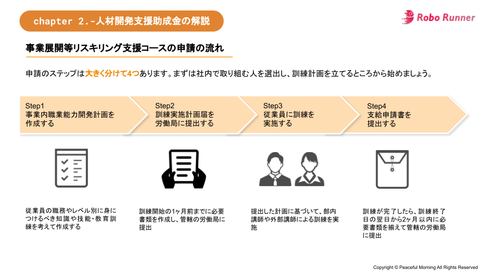 リスキリングの実施はDXにも効果的であることから、政府が助成金を設置しており、当社でも助成金を活用できるRPA関連の研修プログラムをご用意しています。