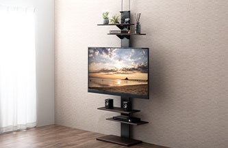 本製品は、テレビを設置する上で、「5段階の高さ調整」「上下3段階30°の首振り」「左右無段階30°の首振り機能」といったと豊富な調整機能を搭載しております。この調整機能によって、ご自宅のリビングやダイニング、寝室などあらゆる視聴環境に合わせて位置を調節することが可能です。