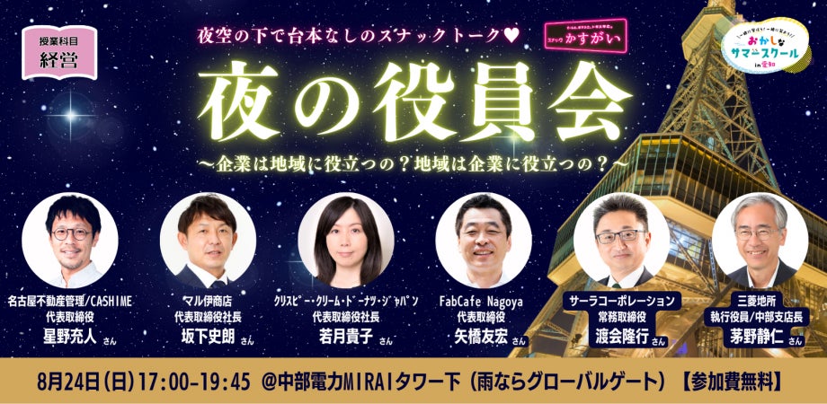 暮らしとエネルギーのサービスを提供するサーラグループ(本部:愛知県豊橋市 / グループ代表・CEO:神野吾郎)は、「愛知を面白く盛り上げよう!」という呼びかけで集まった46社で「第3回おかしなサマースクール」を共催します。