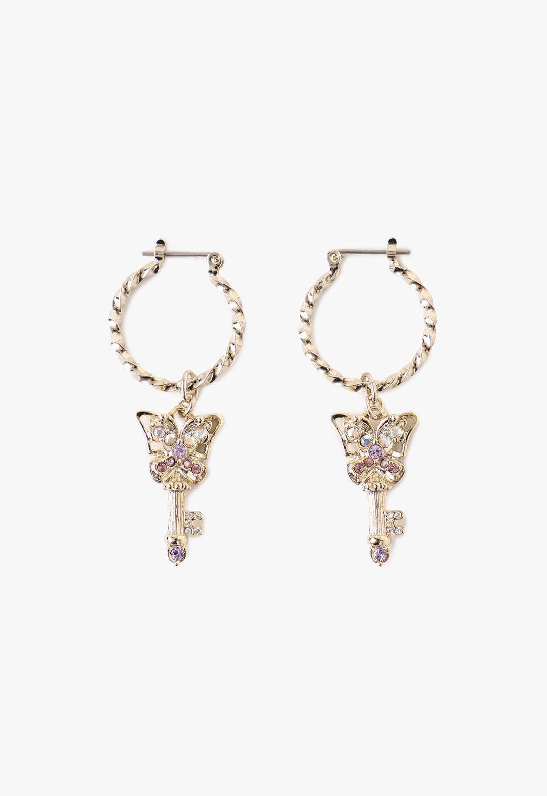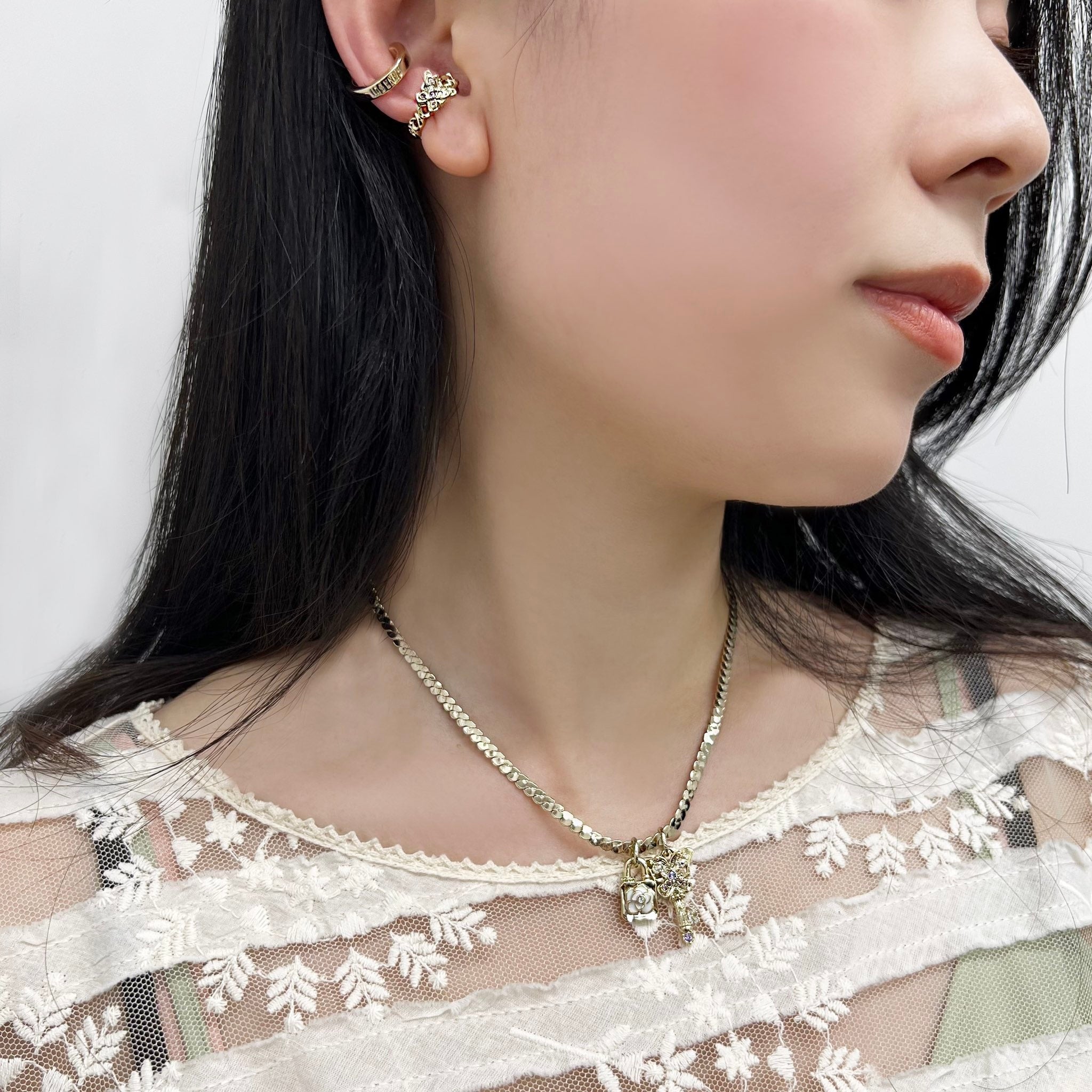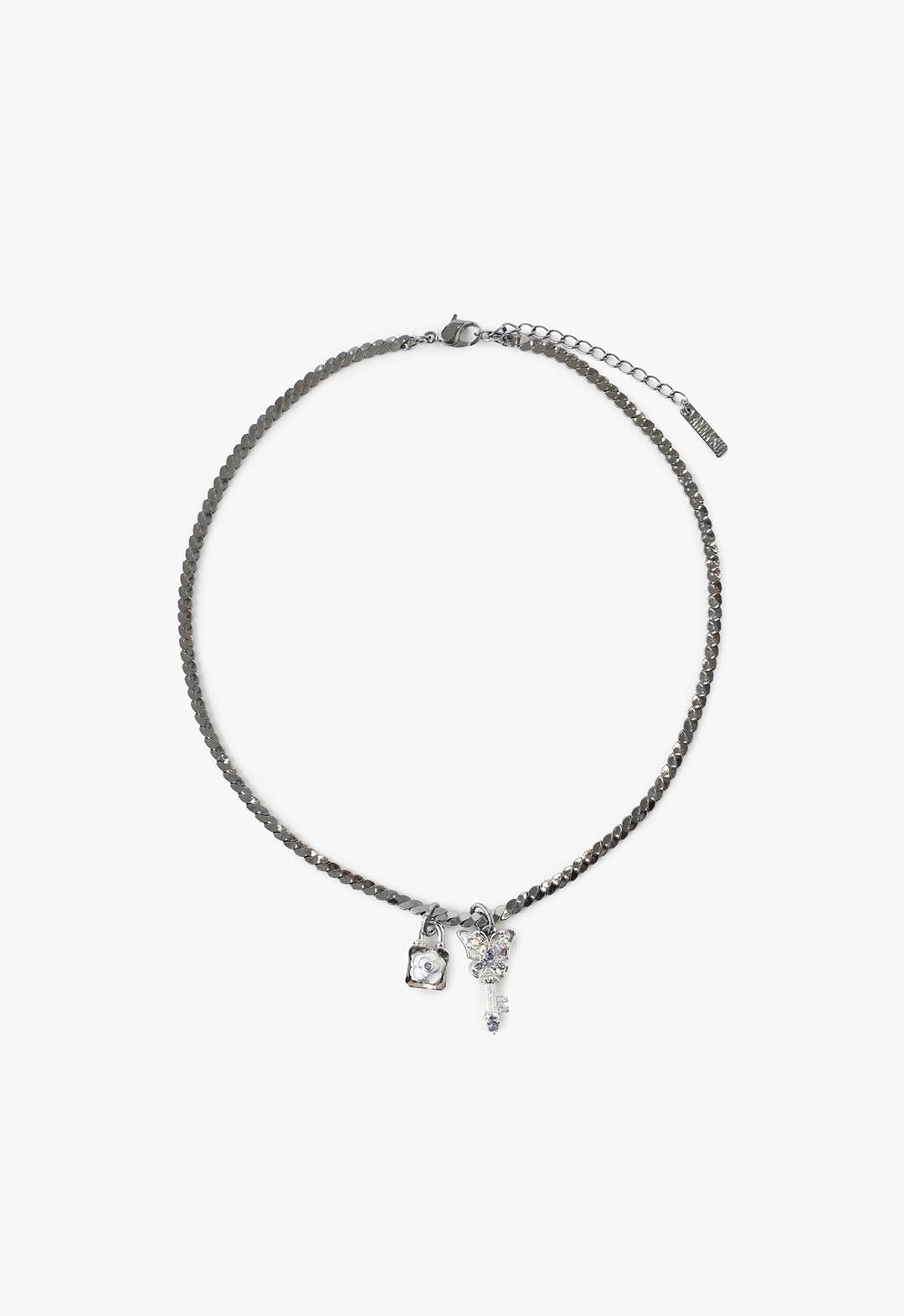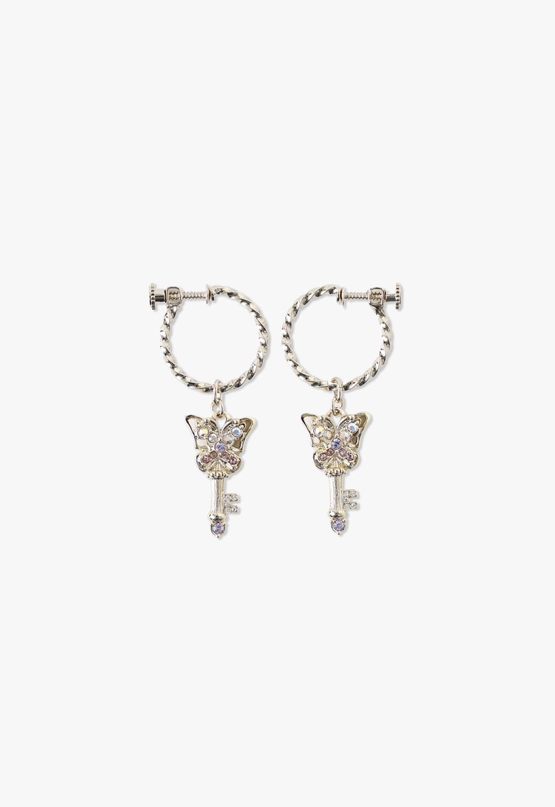 メタリックな錠前、鍵と蝶を組み合わせたモチーフはベーシックながらエッジの効いたデザイン。