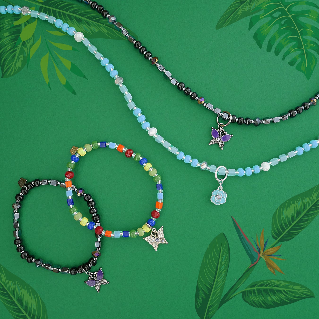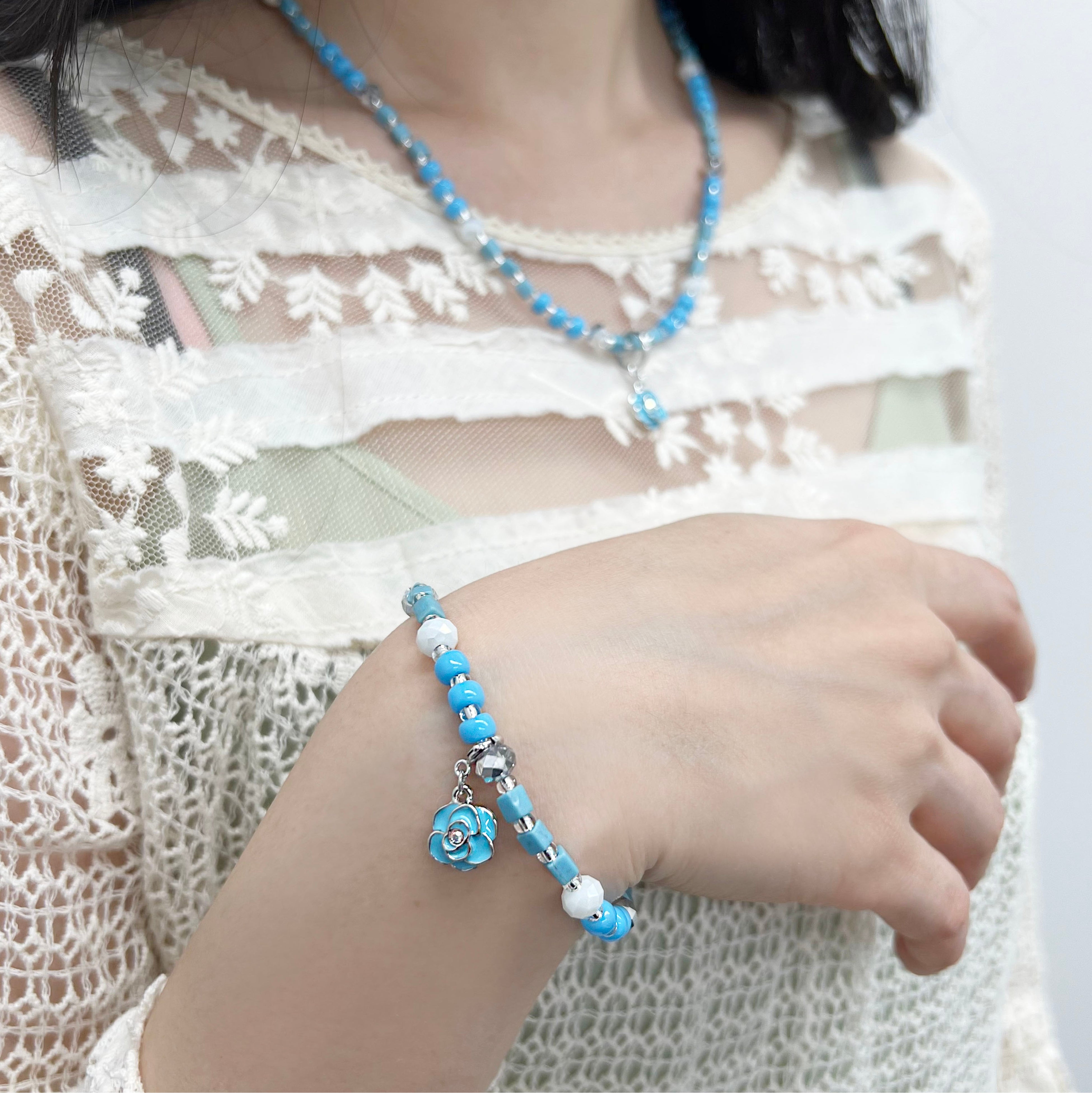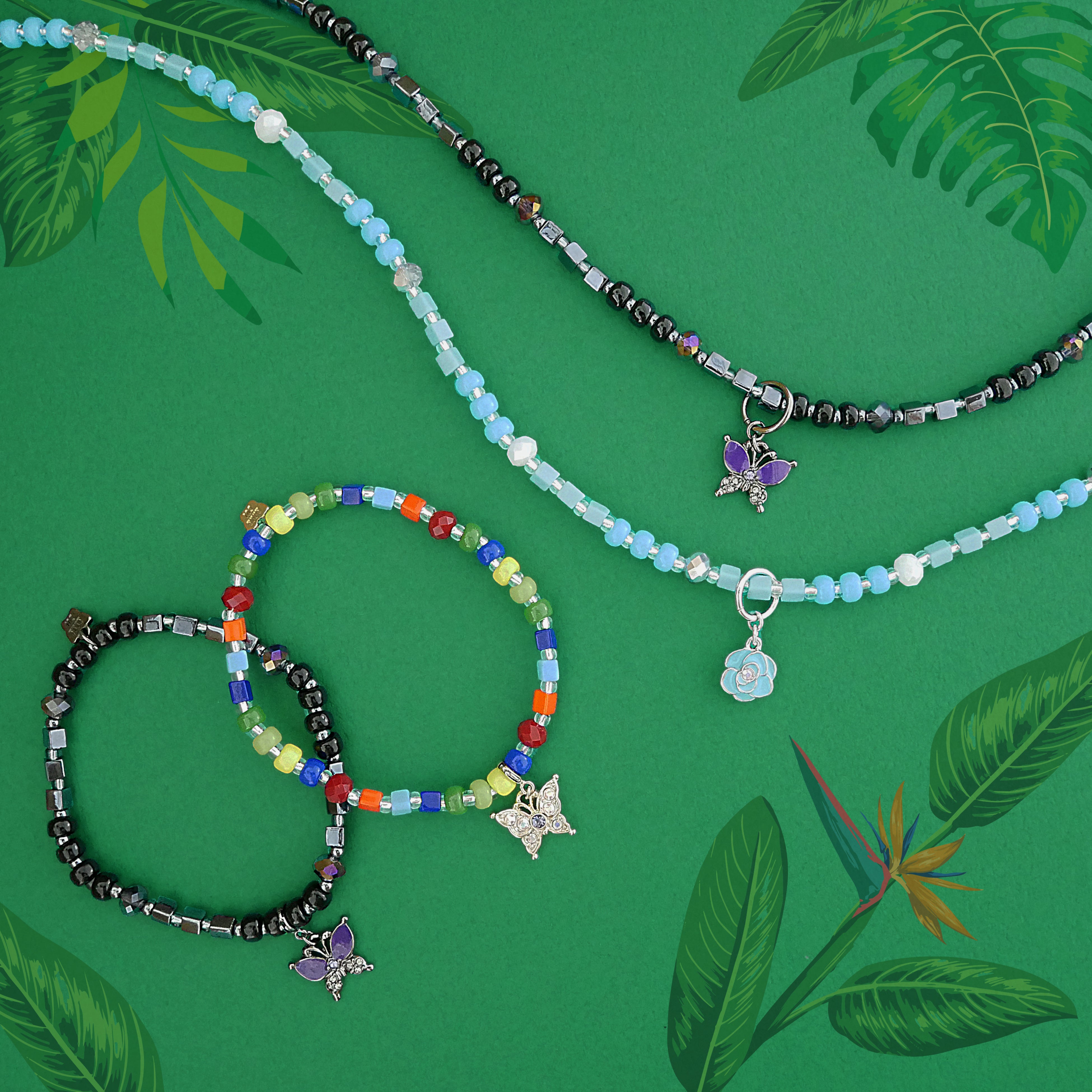 夏のスタイリングにぴったりなビーズデザインは、ネックレスのトップやアジャスターが取り外せる仕様となっておりシンプルにも使えます。