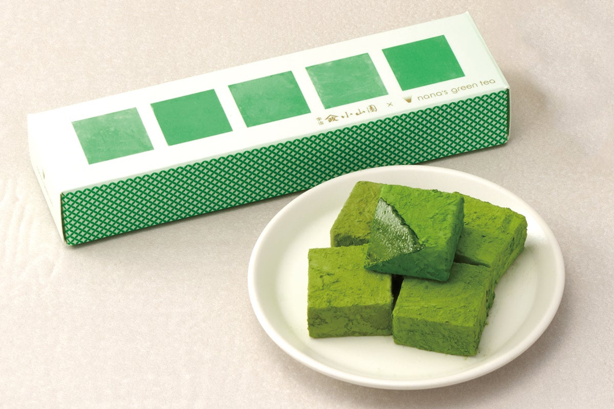nana's green teaの店舗でも使用している、オリジナル抹茶を使用した生チョコレート。
