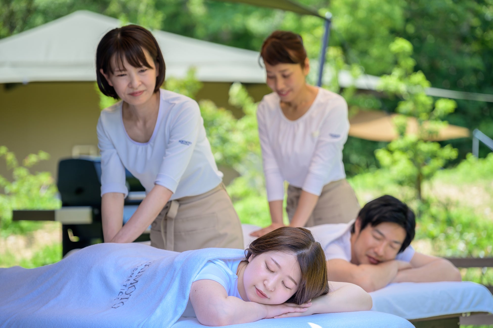 NEMU RESORTでは、ミキモト コスメティックスと連携し実現した「PEARL SPA by MIKIMOTO COSMETICS」(以下「パールスパ」)で癒しの時間を提供しており、ホテルネム内にあるトリートメントのほかに、「NEMU グランピングトリートメント」として、自然豊かなNEMUの丘の上に建つ「ヨガテラス」で心地よい風や鳥のさえずりを感じながら自然と一体となって体験できる贅沢なトリートメント「てふてふの丘スパ」と、昨年の春にオープンしたNEMU フォレストヴィラで実感いただける「NEMU フォレストヴィラトリートメント(※NEMU フォレストヴィラ宿泊者限定)」がございます。