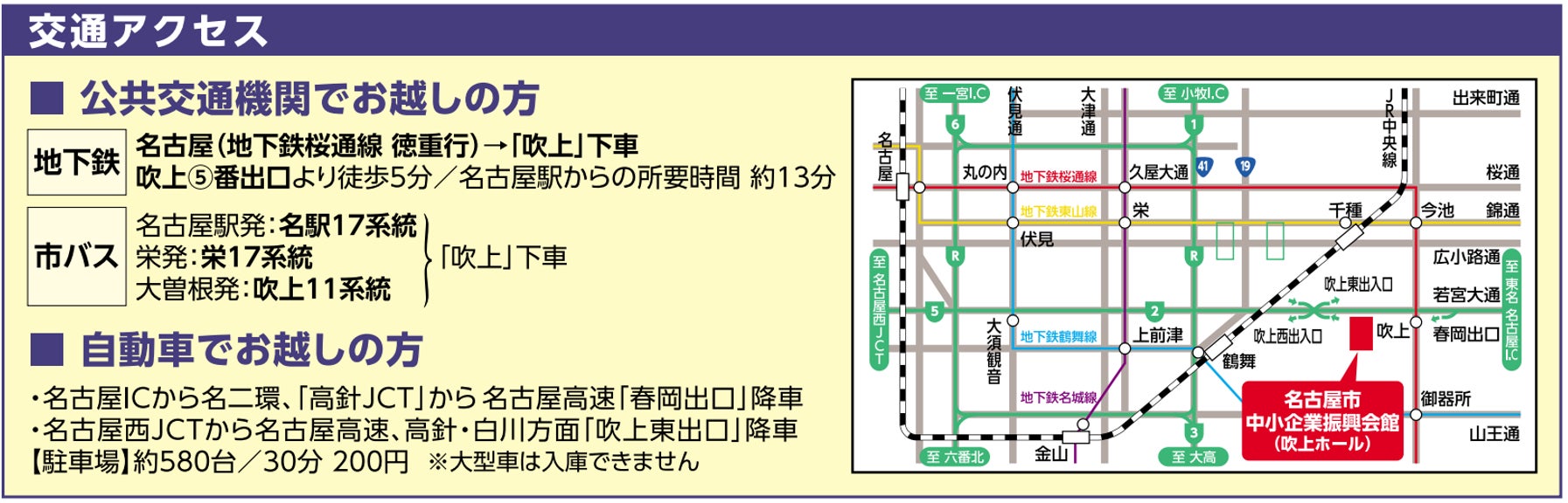 会 場:吹上ホール(名古屋市中小企業振興会館) 名古屋市千種区吹上二丁目6番3号