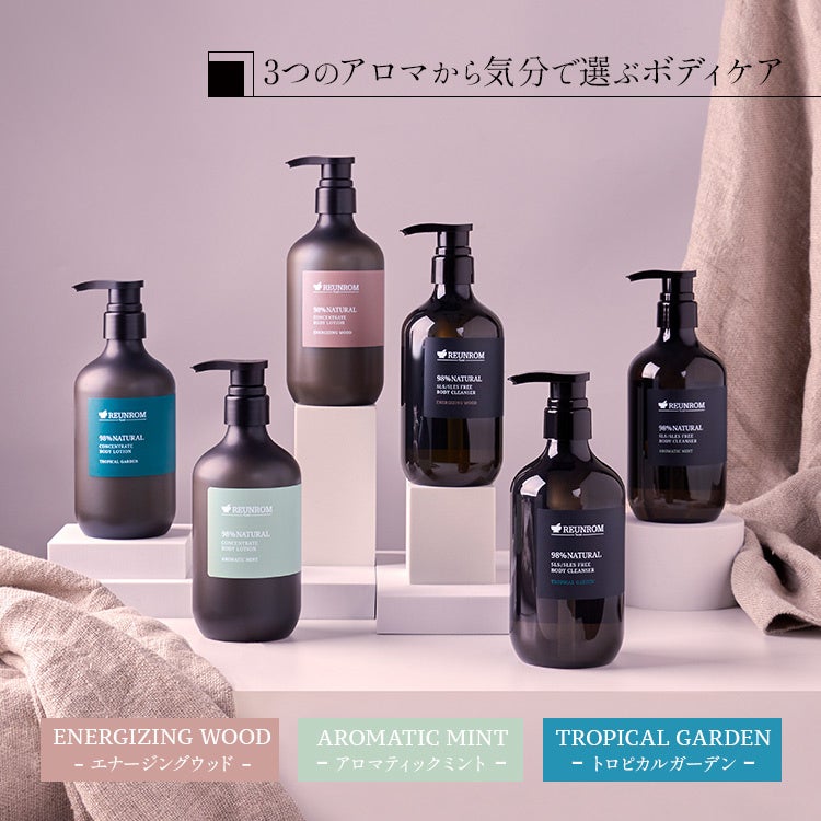 それぞれ、エナージングウッド・アロマティックミント・トロピカルガーデン、3つの香りから選べます。