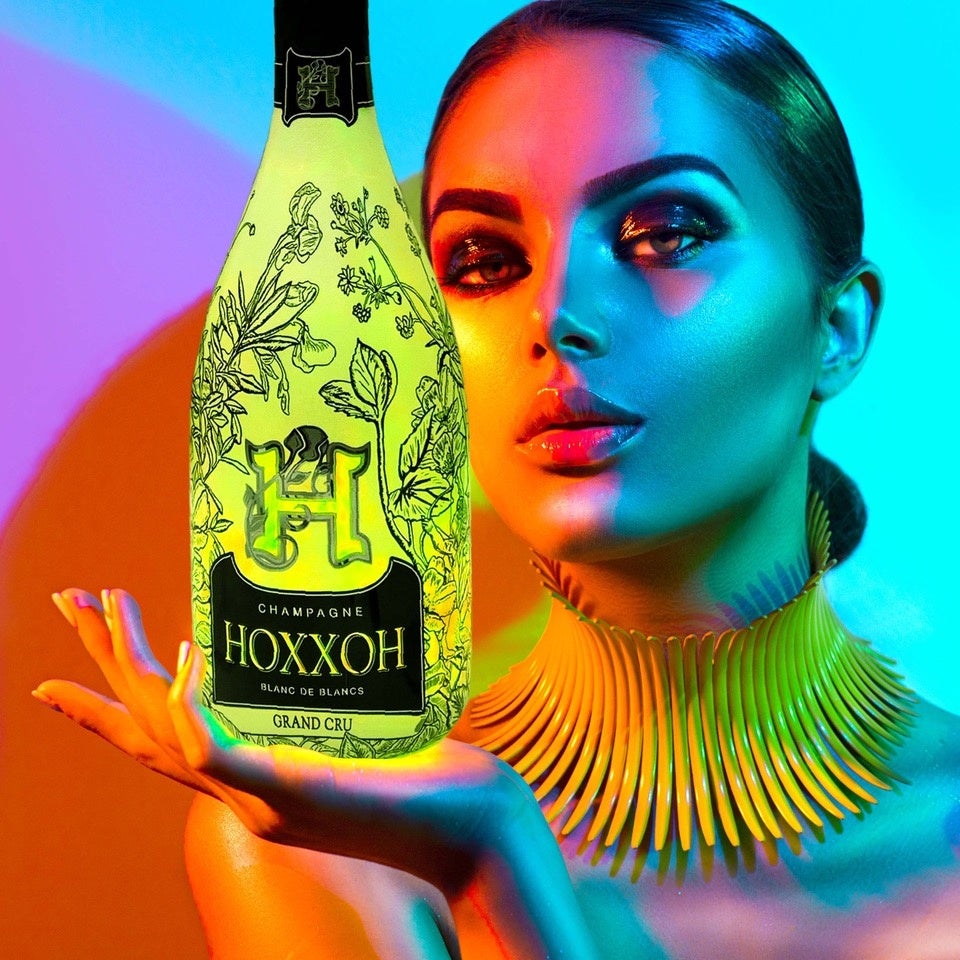 『HOXXOH』は、LED照明の専門家であるグレコワール・ポピノ氏が、フランス・シャンパーニュ地方、ヴァレ・ド・ラ・マルヌのヴァントゥイユを本拠とし1907年から続くラミロー家の当主ラファエル・ラミロー氏とタッグを組み、音楽に合わせてボトルが七色に輝くシャンパーニュを生み出しました。