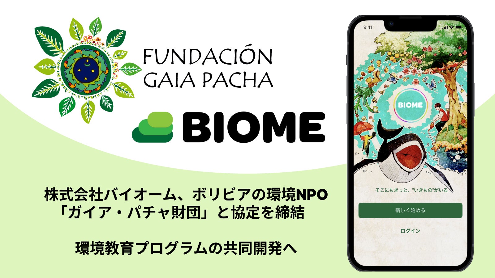 株式会社バイオーム(京都府京都市、代表取締役:藤木庄五郎、以下 バイオーム社)は、ボリビアの環境NGO、ガイア・パチャ財団(Fundación Gaia Pacha)(コチャバンバ県コチャバンバ市、代表:Rodrigo Meruvia Soria、以下 Gaia Pacha)と、スマートフォンアプリ「Biome(バイオーム)」を活用した環境教育プログラムの開発と実施に向けた協定を締結したことを発表いたします。バイオーム社とGaia Pachaは、この協定に基づく取り組みを通じて、ボリビア・コチャバンバの地域住民に生物多様性の価値を理解してもらい、特にこの地で社会課題となってきた河川の水質汚染の解決に貢献することを目指します。