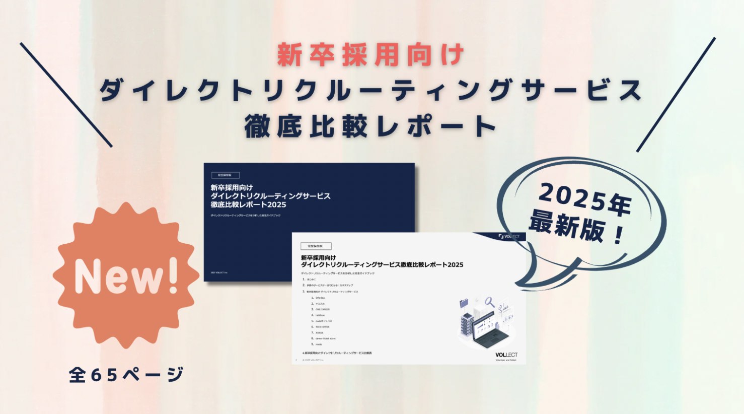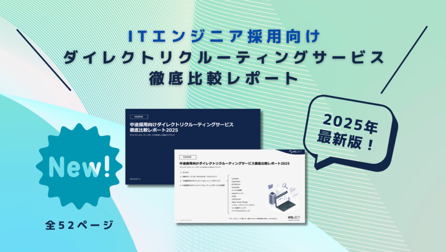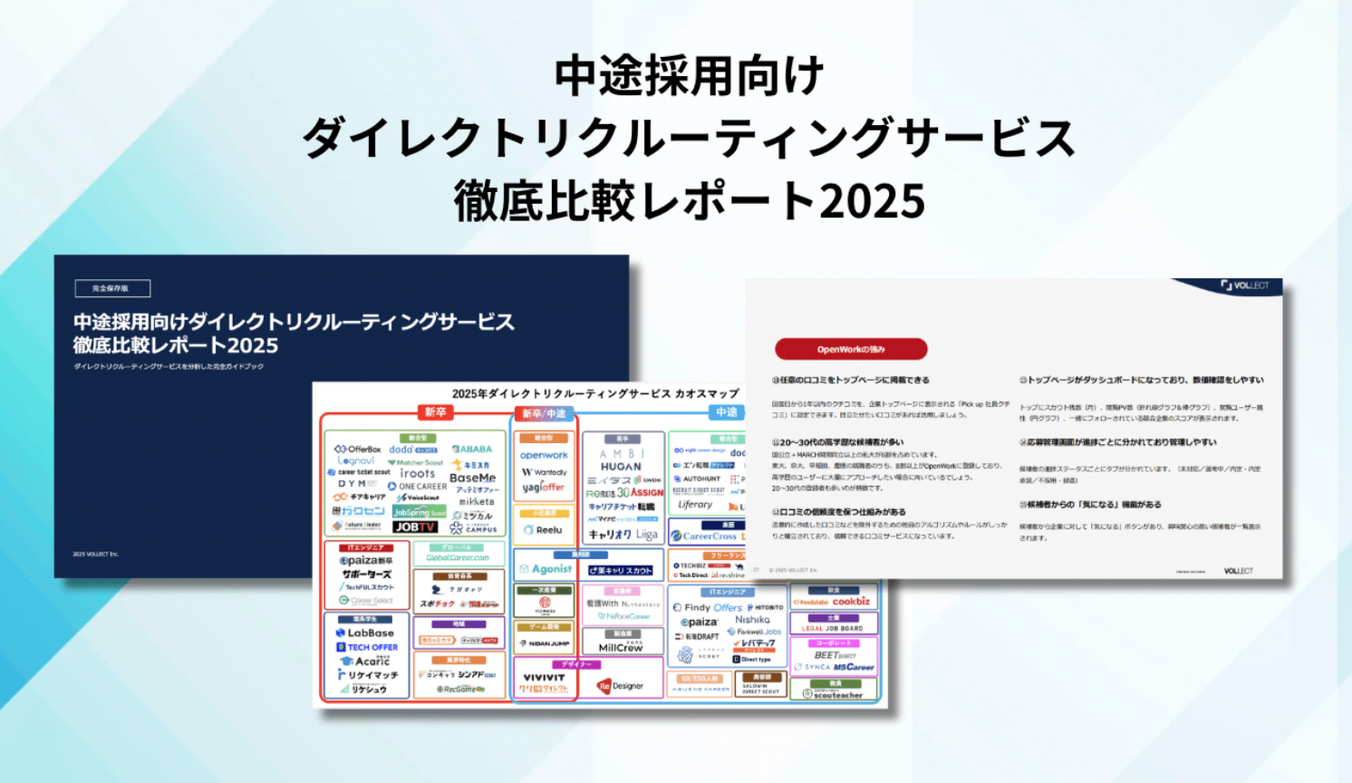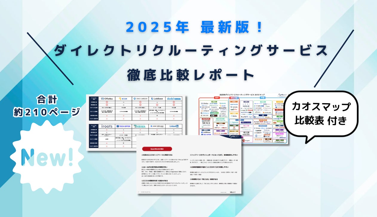 株式会社VOLLECT(東京都渋谷区、代表:中島大志)は、「ダイレクトリクルーティングサービス徹底比較レポート2025」を無償公開しました。中途採用、ITエンジニア採用、新卒採用向けの計29サービスを分析した完全ガイドで、どなたでも無料でダウンロードいただけます。