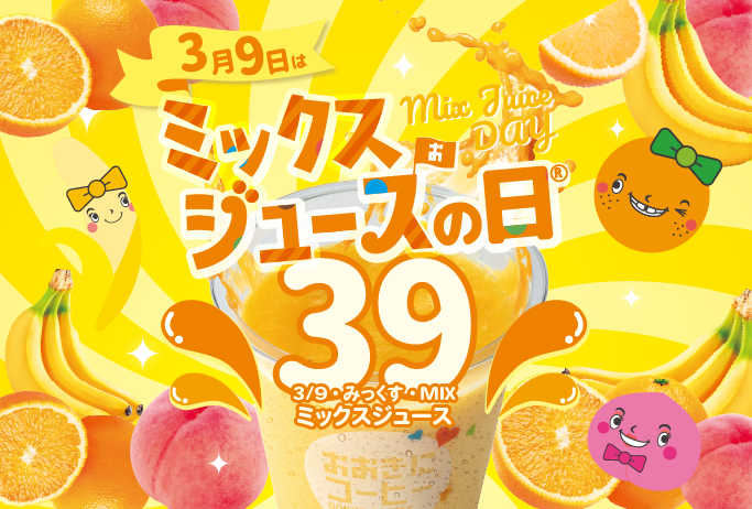 「3月9日はミックスジュースの日」(ミックス“39”ジュースの語呂合わせ)