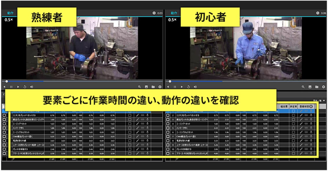 『OTRS+AI』は、1サイクル分の作業データだけで、高精度な作業分析を可能にする『OTRS10』のオプションサービスです。これまで人の手で行っていた動作の要素ごとの抽出や、それにかかる時間の分析をAI が行うことで、ものづくりの現場の即戦力として活用できます。また熟練者と初心者の動作の要素ごとの比較が簡単に行えるため、初心者の技能向上にも役立ちます。