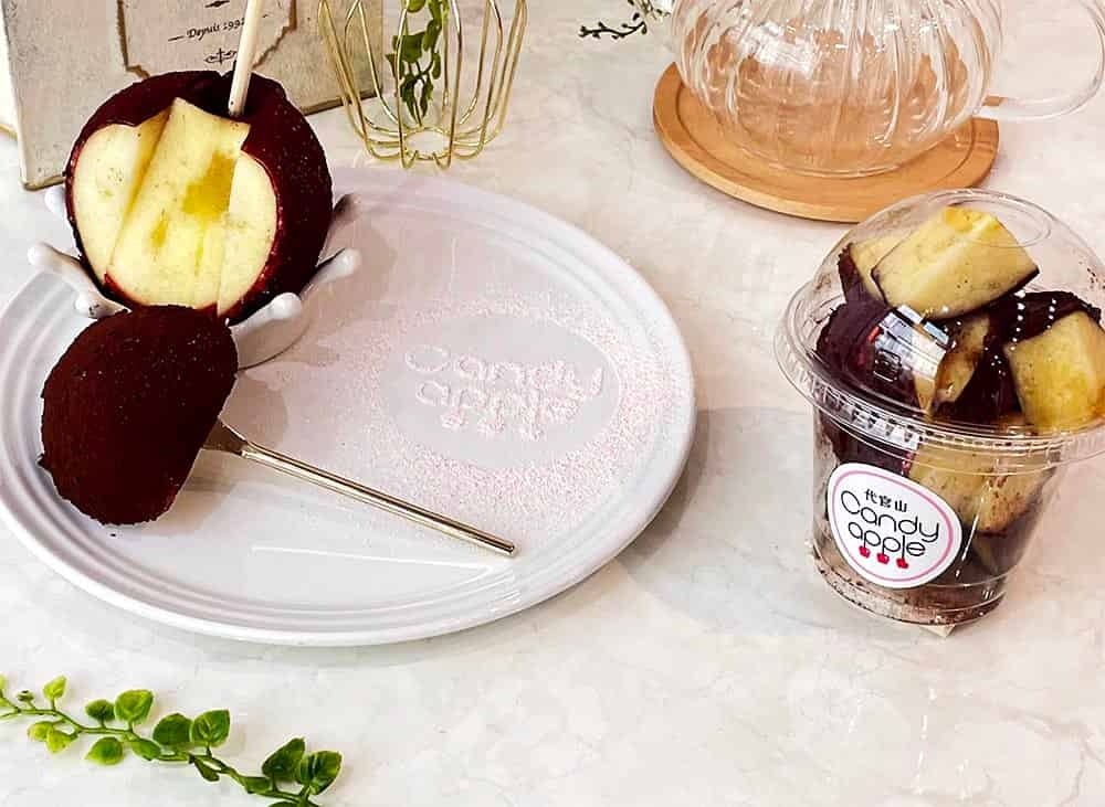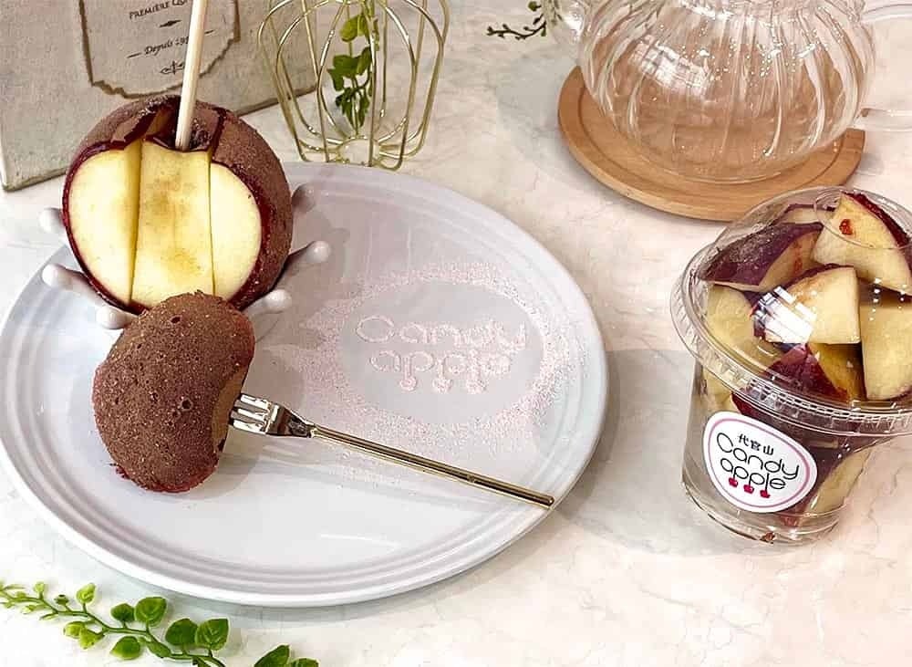 常設店で食べられる、食べ歩き用りんご飴「カットテイク」