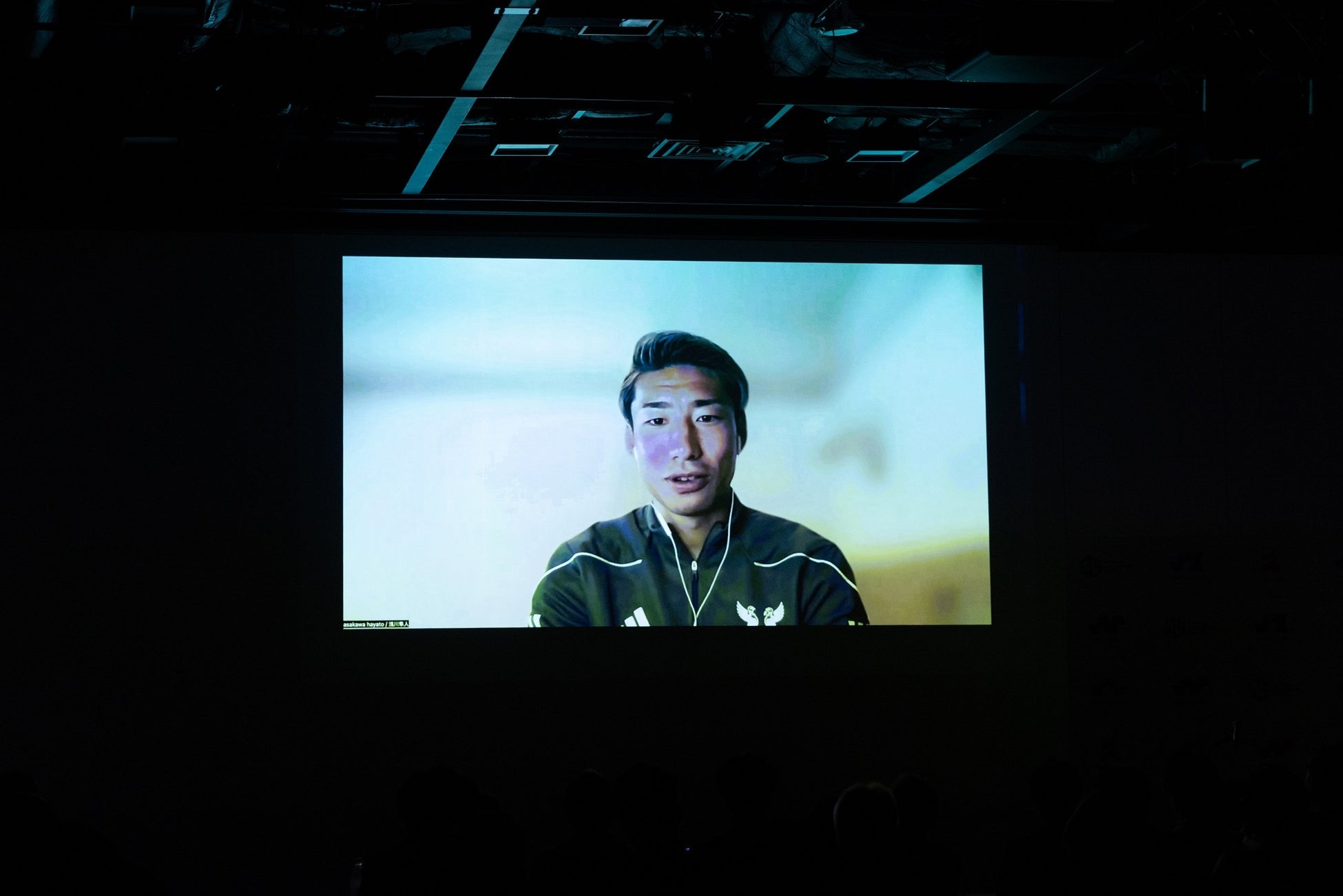 「この度はソーシャル・インパクト賞を受賞させていただきありがとうございます。松本山雅FC所属の浅川隼人です。現役アスリート初受賞ということで大変誇らしく、嬉しく思います。これまで〝夢を追い、支え、創る〟というミッションのもと活動をしてきました。これからもスポーツの力を使い、0距離で多くの方と関わり、人を繋ぎ、夢を紡いでいけるように精進していきたいと思います。皆様と共により素晴らしいスポーツ界、日本にしていけることを楽しみにしています。」