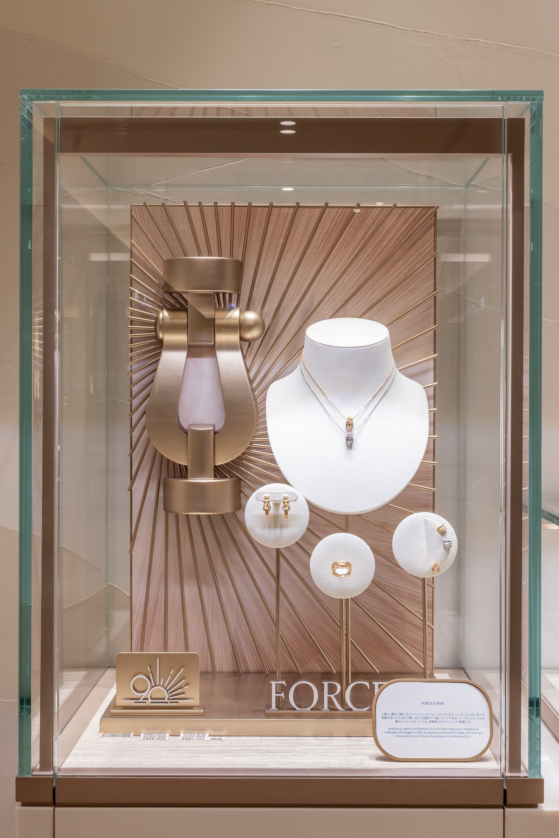 コレクションの「Going beyond(限界を超える)」精神は、メゾン最新の新作であるイエローゴールドのフォース10ライズが日本で阪急百貨店にて先行発売されることで、ディスプレイにも表現されています。