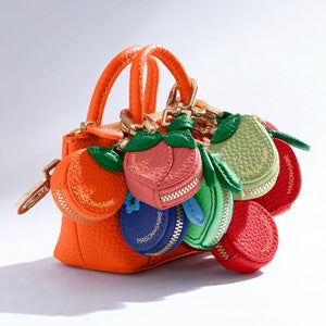 オレンジや林檎、チェリー、ピーチなど色とりどりの愛らしいデザインばかり。小銭や鍵、AirTagなど小物を収納できる上に、クリップひとつで簡単に取り外し可能。バッグやポーチに重ねづけしても可愛い集めたくなるフルーツチャーム。