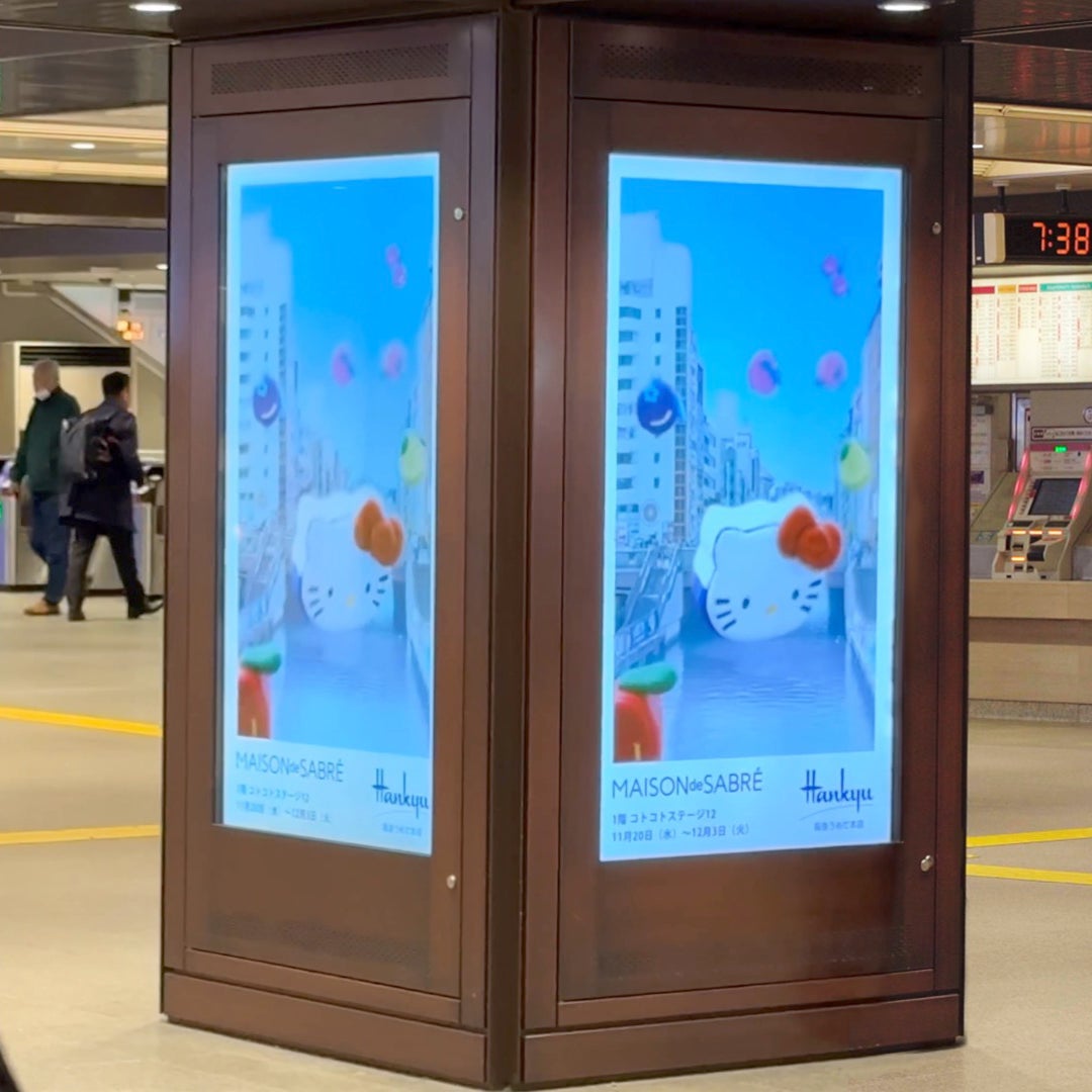 また、ブランド初の試みとなるデジタル柱広告が阪急大阪梅田駅2階中央改札前にて放映中。大阪初上陸を記念して、12月1日(日)までの1週間、阪急大阪梅田駅がMAISON de SABRÉ一色に。エネルギー溢れる大阪の街とコラボレーションしたプレイフルなデジタル広告をぜひお楽しみください。