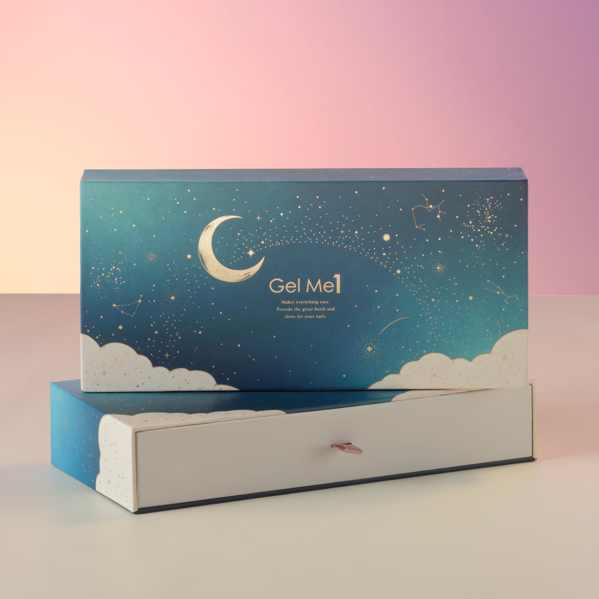 この冬のテーマの星空をイメージしたスペシャル感のあるGelMe1オリジナルボックスに入れてお届け!ボックス内の仕切りを外して、小物の収納ケースとしてもお使いいただけます。