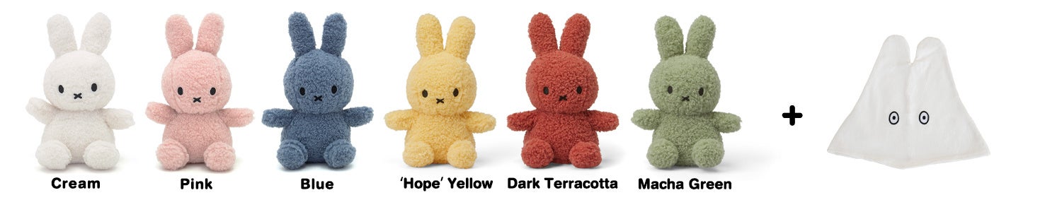 選ぶのに迷ってしまうほどカラーバリエーションが豊富な「Corduroy」シリーズや、もふもふな触りごこちに癒される「Recycle Teddy」シリーズ、繊細に編み込まれた「Organic Cotton」シリーズなど、素材や品質にもこだわったmiffyとその仲間たち。バリエーションゆたかな「miffy collection」は、今も世界中で愛され続け、これからもすばらしい未来をもつすべての子どもたちの「しあわせ」のために、特別な想いをこめて…