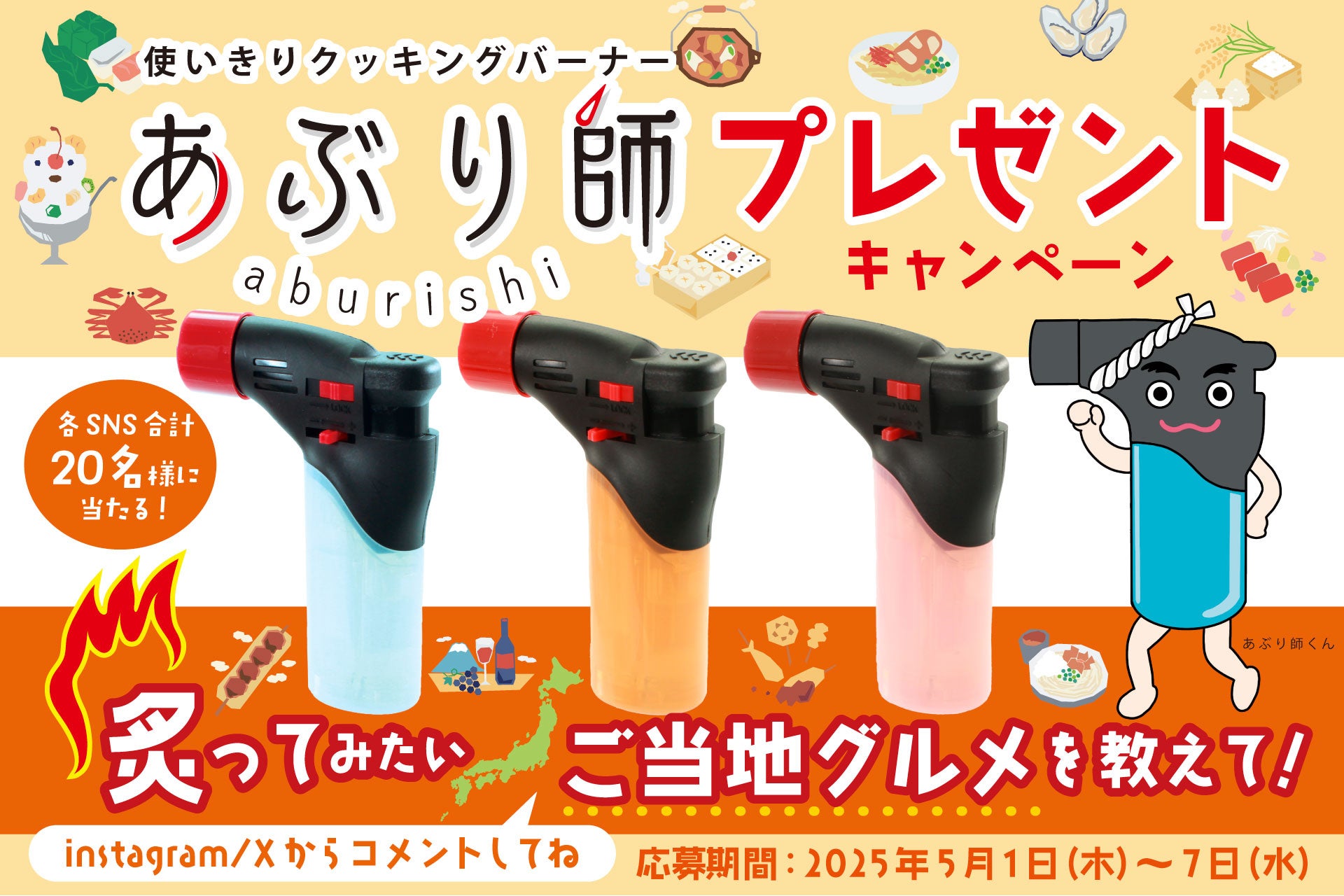 炙ってみたいご当地グルメを募集!使いきりバーナーライター「あぶり師」プレゼントキャンペーン開催