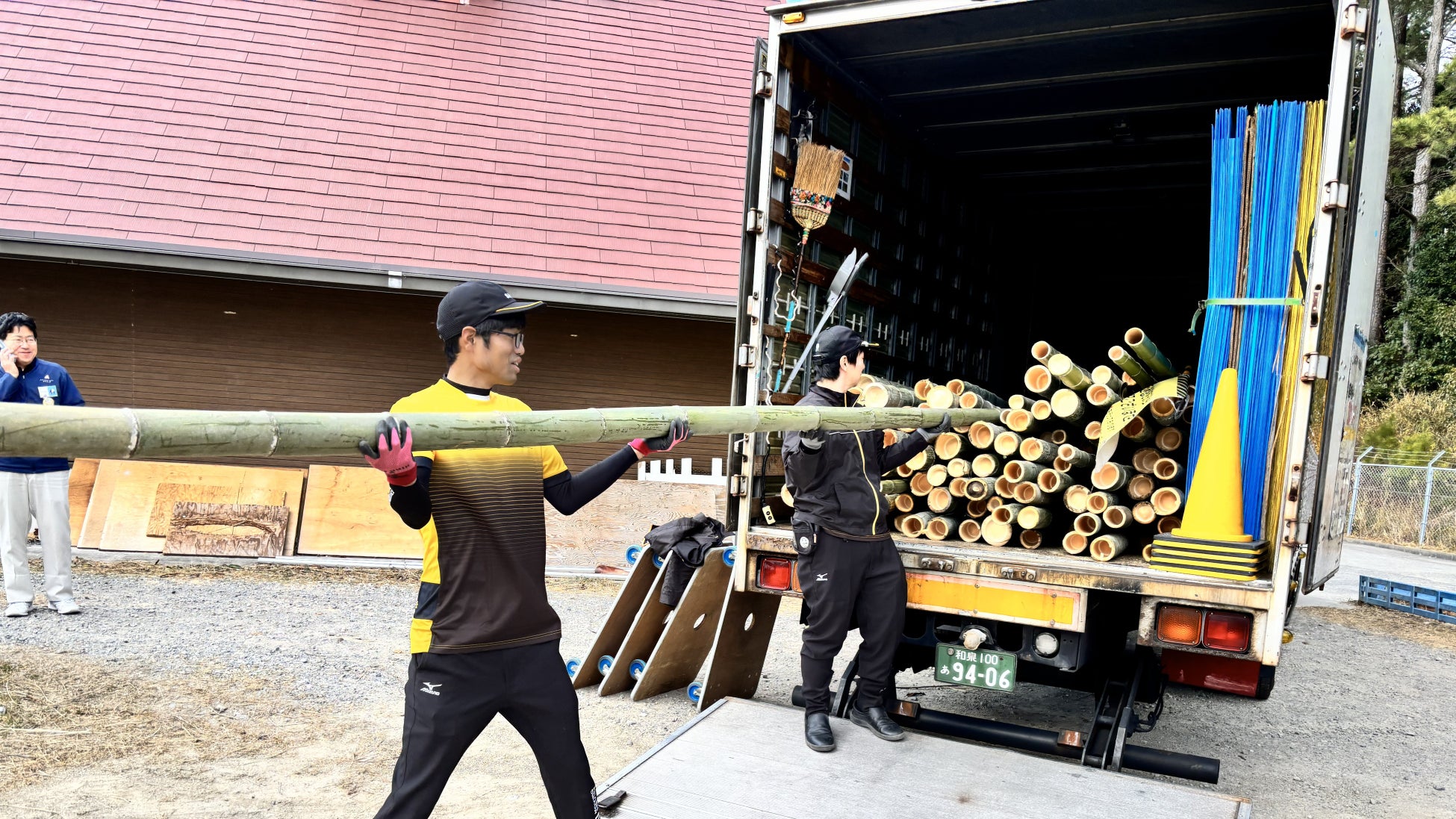 前日までに伐採された竹約500本のうち、250本をサカイ引越センターの4トントラック2台で和歌山県白浜町のアドベンチャーワールドへ輸送しました。