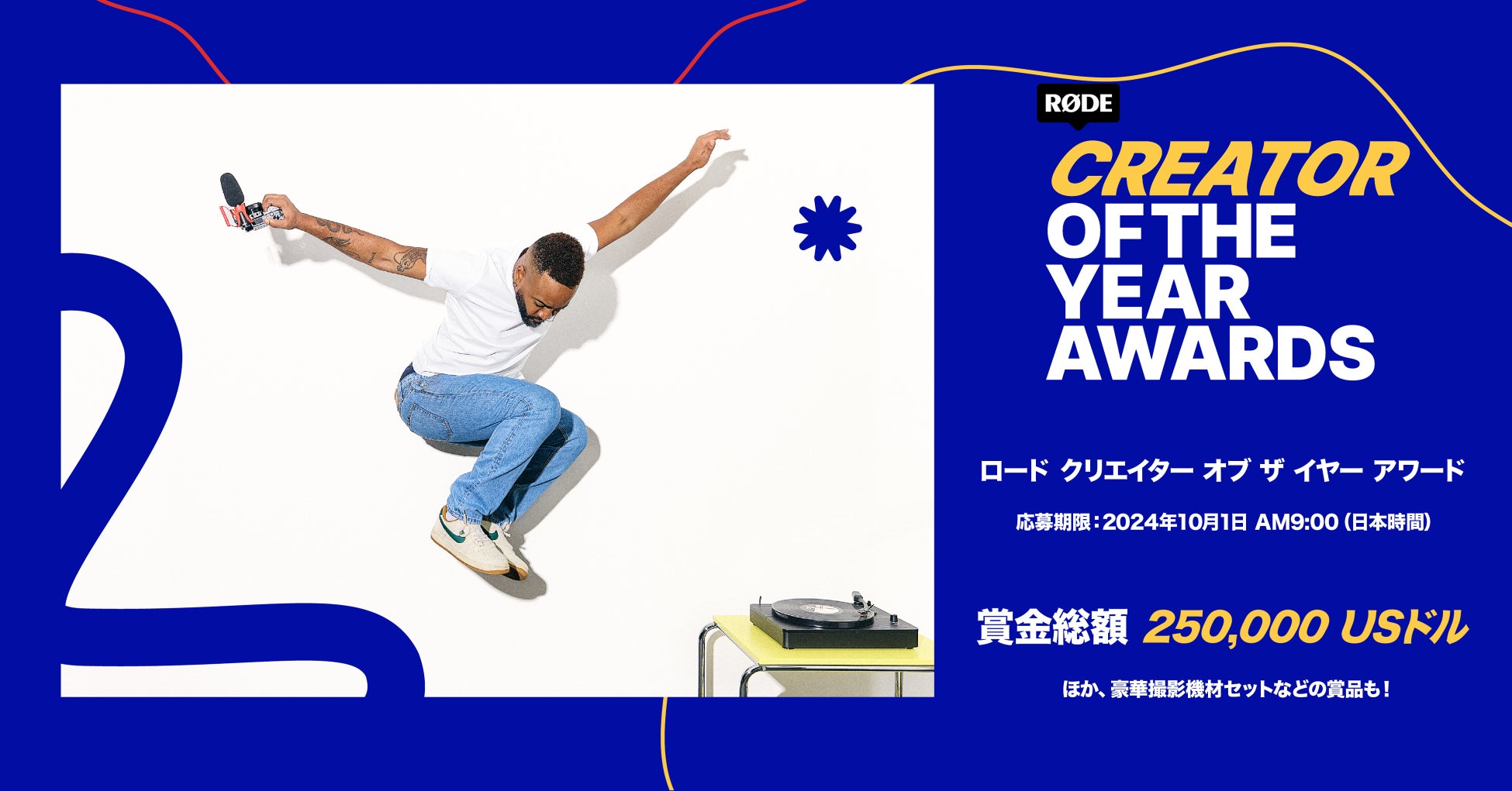 エントリー対象のロードマイクロフォンズ製品や、エントリー方法の詳細については、公式ホームページ内F&Q(creatorawards.rode.com/faqs)および規約(creatorawards.rode.com/terms)をご覧ください。