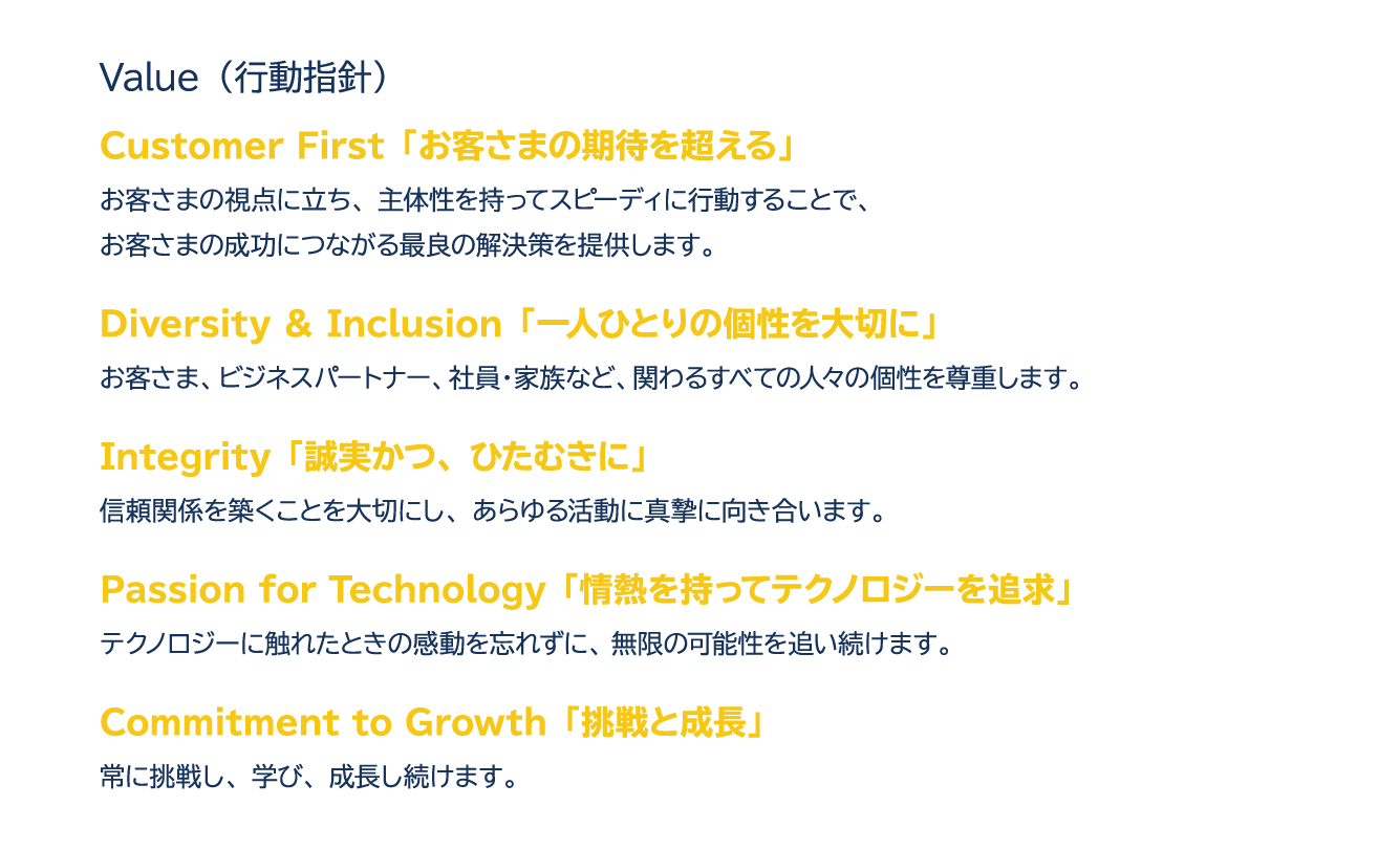 ※Mission・Vision・Value の詳細については、以下のページをご覧下さい。