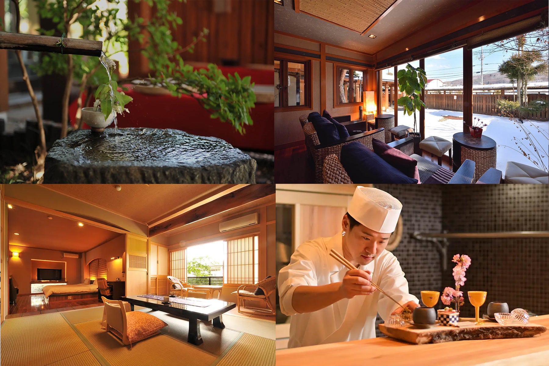 趣向を凝らした客室、源泉掛け流しで「奥嬬恋の湯」を注ぐ湯船、旬の高原野菜を活かした創作料理とともに、里山ならではの時間をのんびりとお過ごしください。