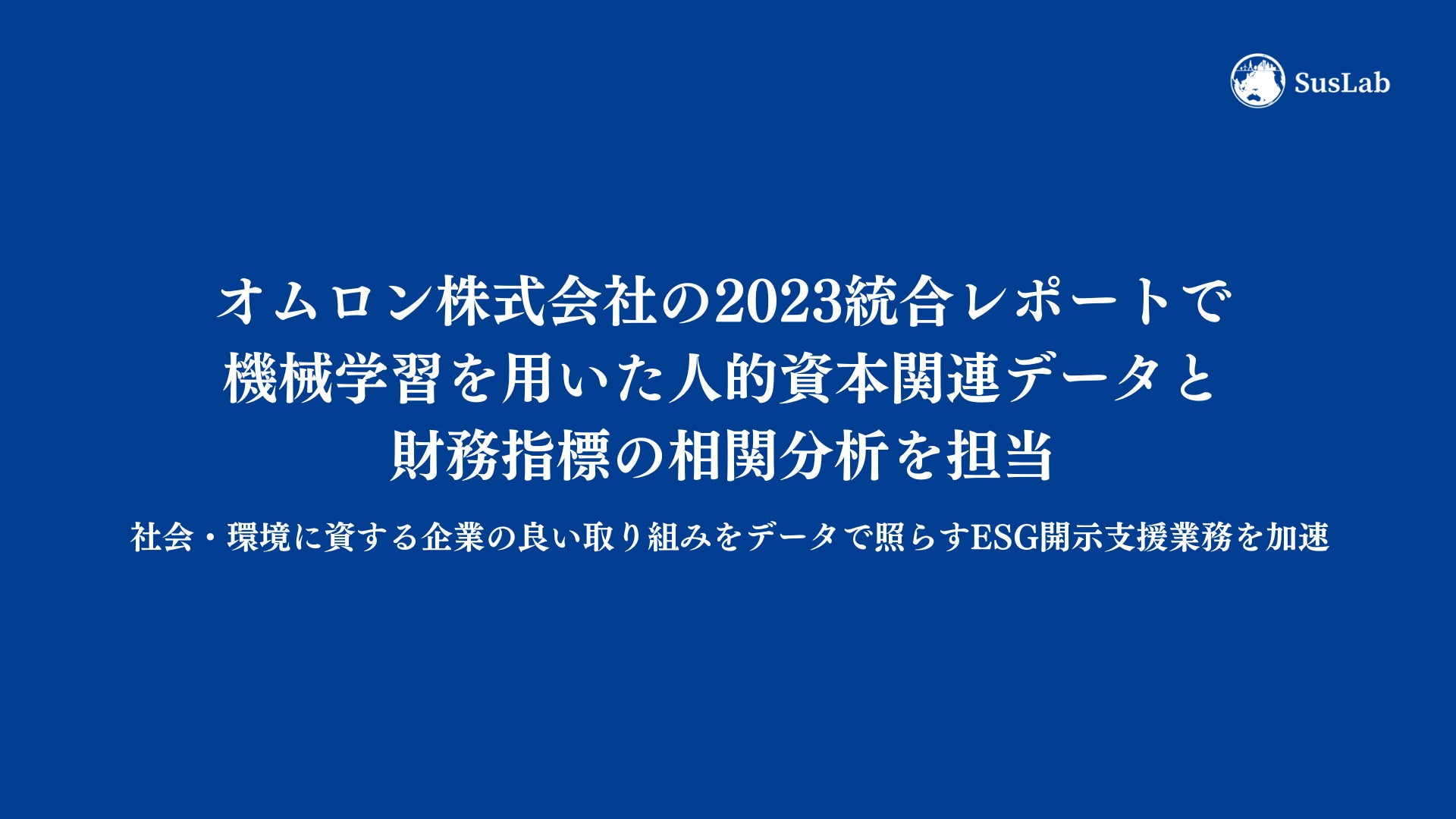 サステナブル・ラボ、オムロン株式会社の2023統合レポートで、機械学習を用いた人的資本関連データと財務指標の相関分析を担当