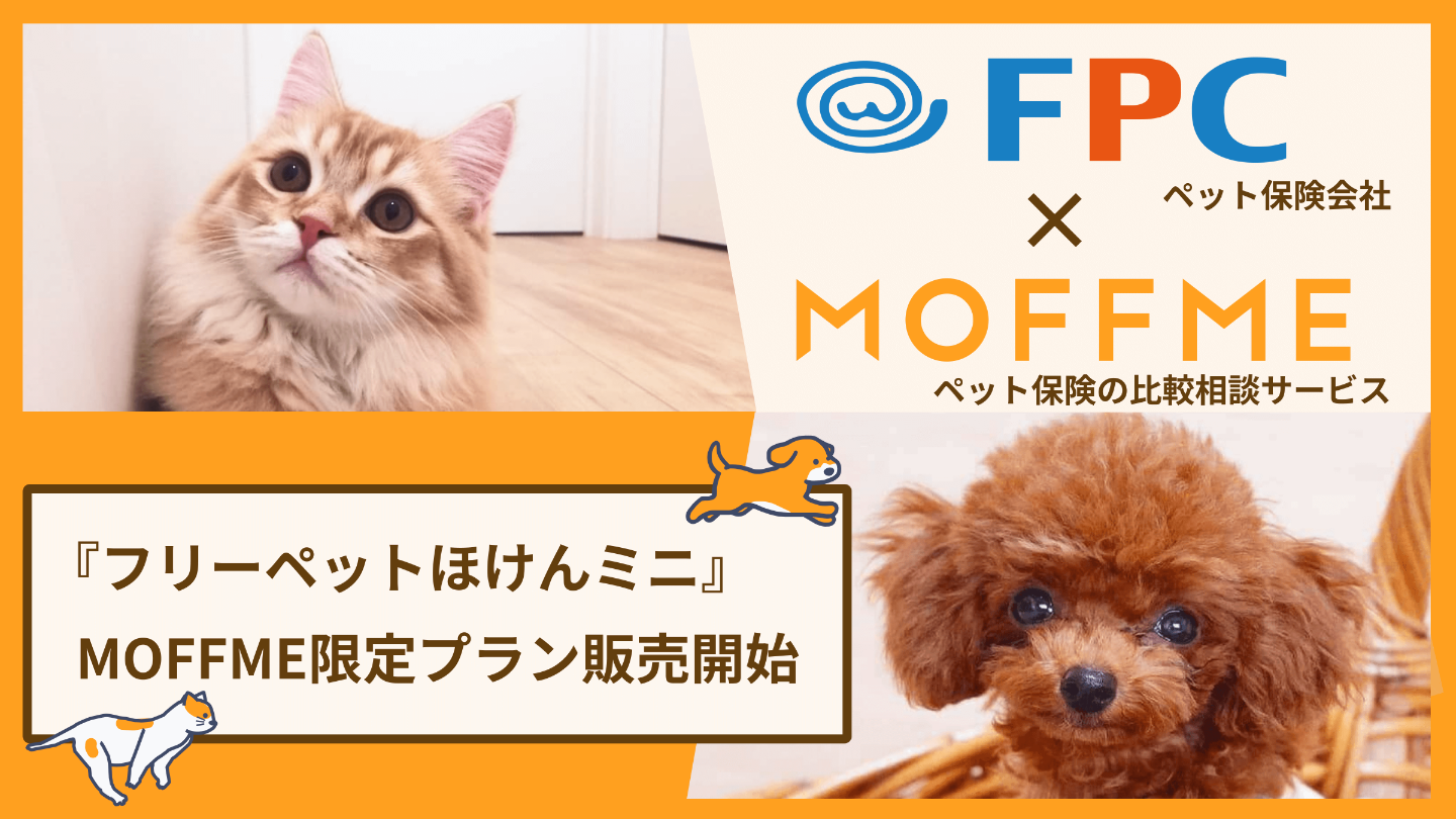 犬と猫のペット保険を扱う株式会社 FPC とペット保険の比較相談サービス「MOFFME」を運営する株式会社Wizleap が提携し、MOFFME 限定で申し込み可能なペット保険「フリーペットほけんミニ(MOFFME 限定プラン)」の販売を開始!