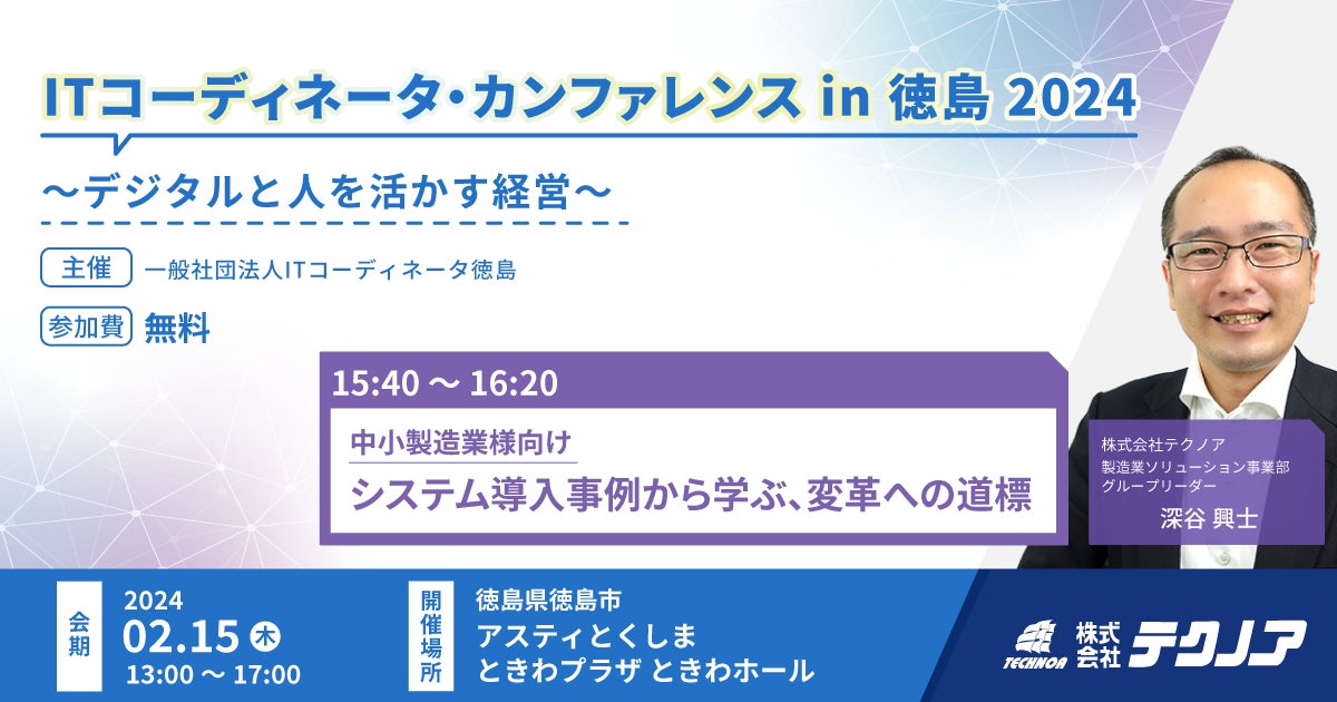 【生産管理とDXのテクノア】「ITコーディネータ・カンファレンス in 徳島 2024」に登壇します
