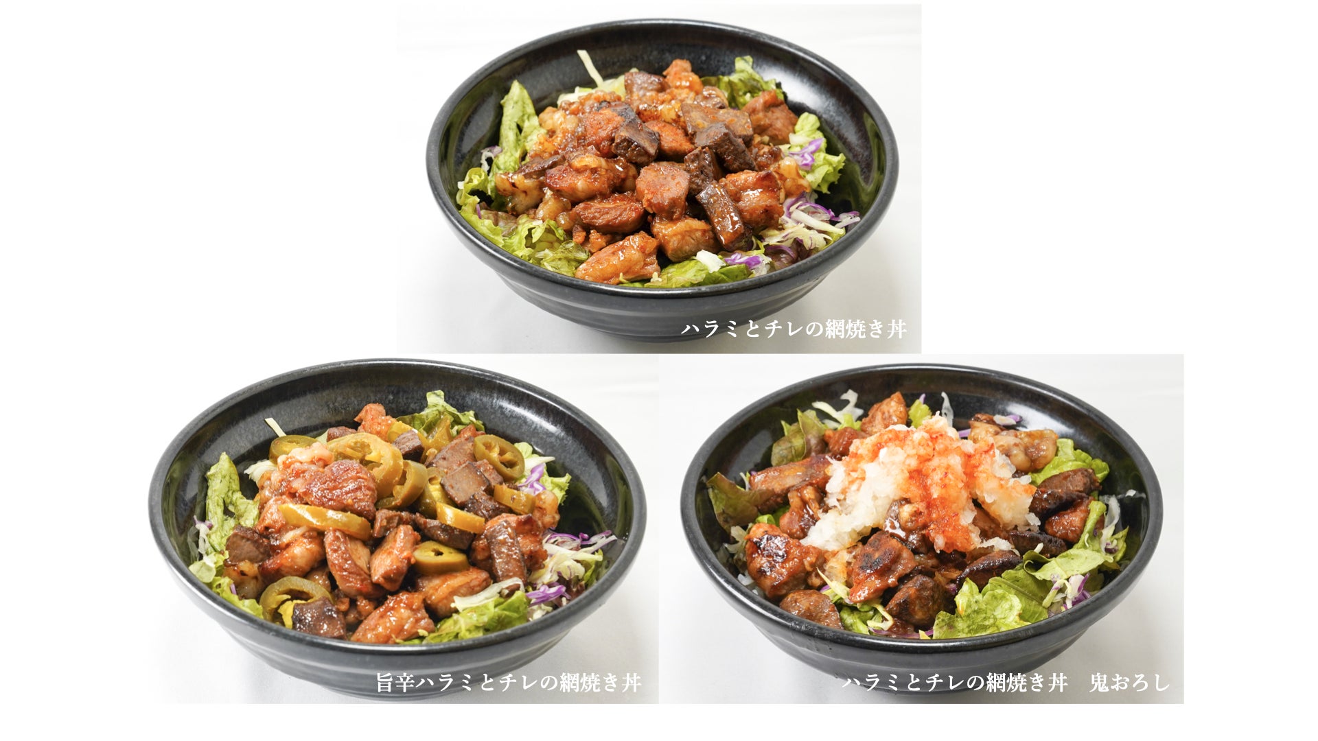 夏バテなんのその、ゴロゴロした肉類がたっぷり、ガッツリ食べたい人向けに『ハラミとチレの網脂焼き丼』、ピリ辛がクセになる『旨辛ハラミとチレの網脂焼き丼』、その他鬼おろしが付いた丼ものがラインナップ。