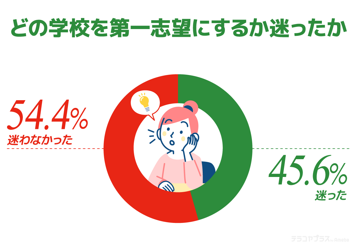 続いて、第一志望校をどの学校にするか決める際に迷いはあったかどうか、またどのような点で迷ったか聞いてみました。