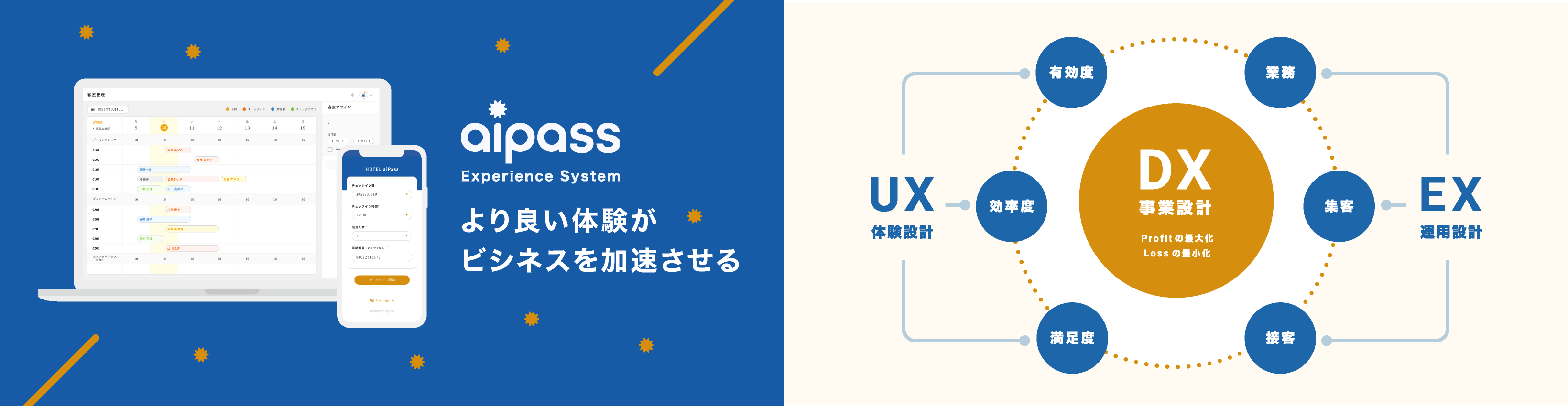 ※これまで宿泊施設様にご利用頂いておりましたHotelStyleOS『aiPass』は、『aipass for hotels』としてリニューアルし、これからも機能提供を続けてまいります。
