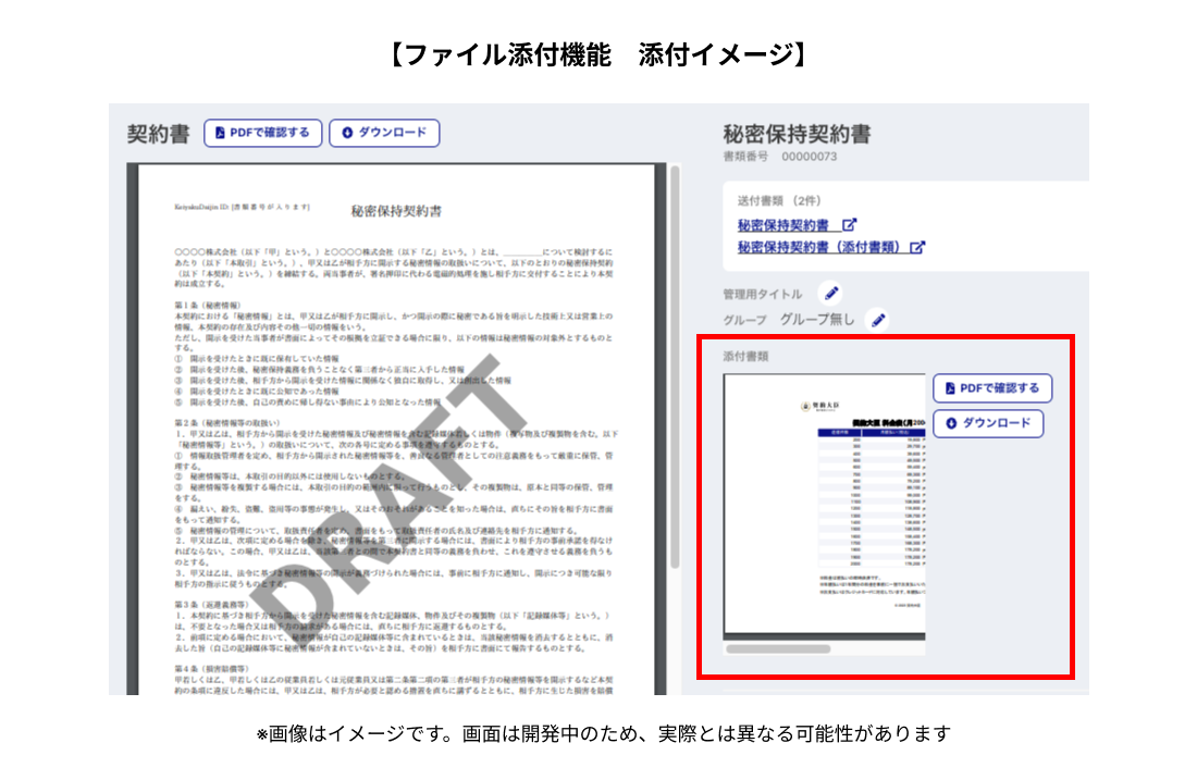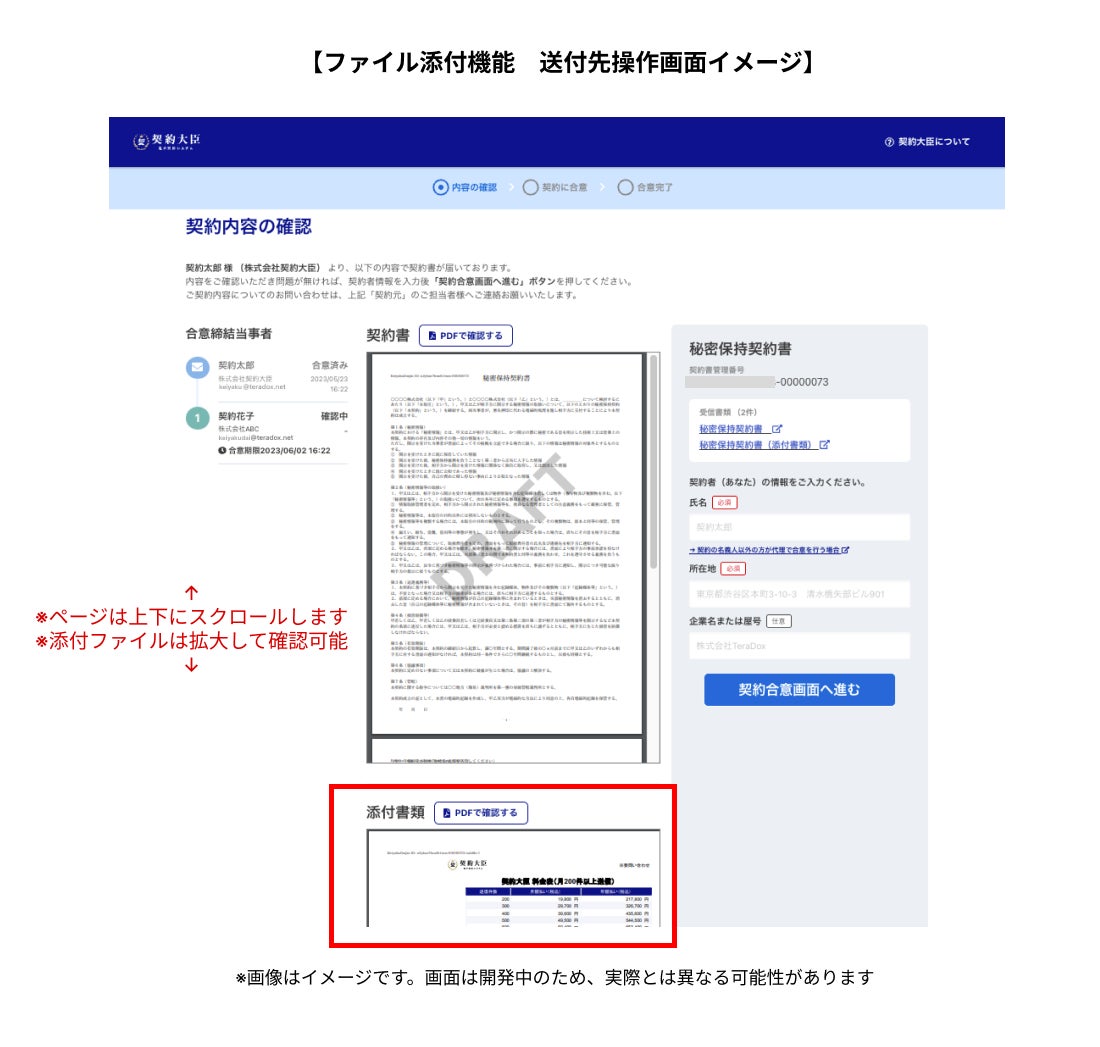 ご利用いただいている中で、「契約書と一緒に補足資料や付随する書類を一緒に送りたい」と多数のご要望をいただくようになりました。