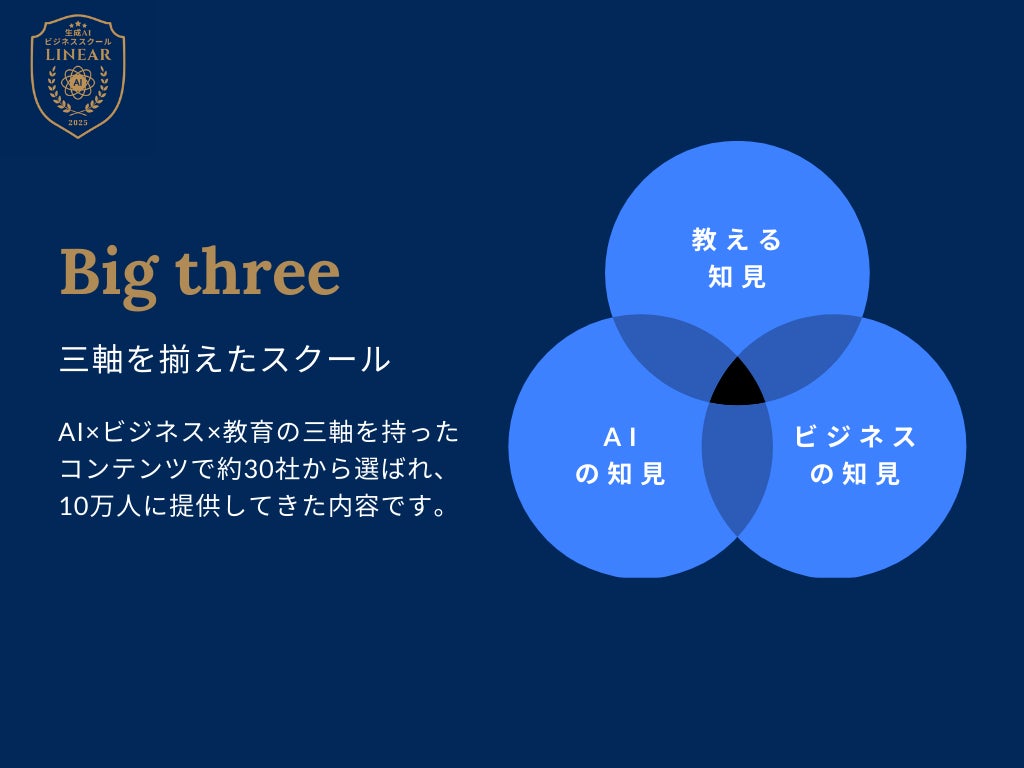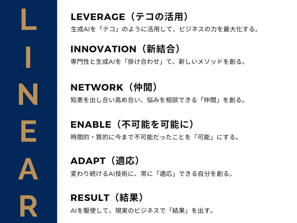 そこで、倉嶌氏は確かなメソッドを適正な価格で提供したいと考え生成AIスクール「Linear(リニア)」をオープンしました。
