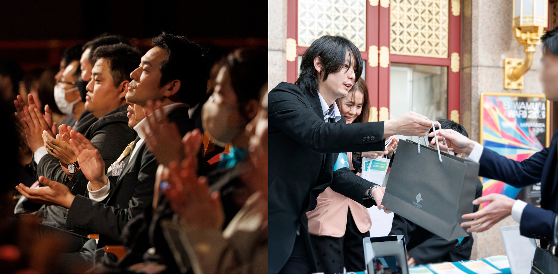 続く第3部では、1年間の功績を残した社員を称えるメインイベント「社内表彰式(AWARD)」を開催。売上などの数値目標だけにとらわれず、日々の仕事に向き合う姿勢やプロセスを重視して選出されるのが特徴です。全11部門で受賞者が発表され、客席の上司から贈られる熱い推薦コメントとともに、仲間たちの頑張りを全社員で称賛しました。こうした称え合う文化が組織のエンゲージメントを高め、心理的安全性の向上や離職率の低下にもつながっています。