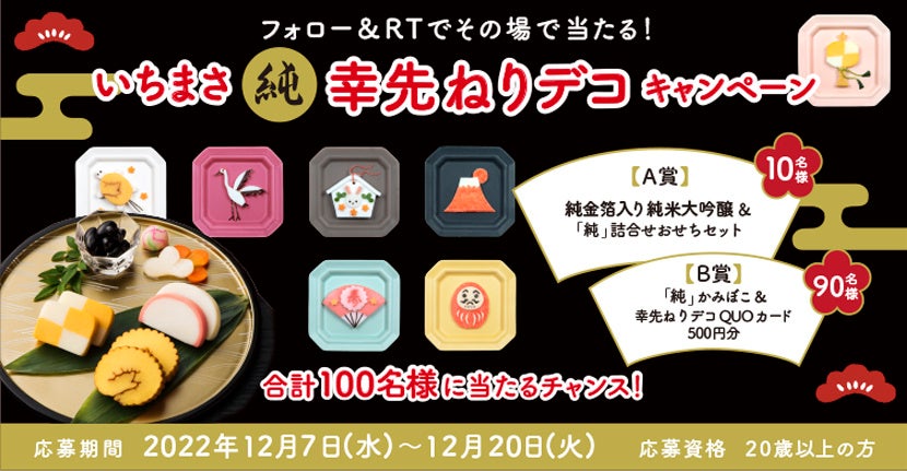 一正蒲鉾株式会社(本社所在地:新潟県新潟市東区、代表取締役 社長執行役員:野崎正博)は、2022年12月7日(水)~12月20日(火)の間、いちまさ公式Twitterから応募可能な「いちまさ『純』幸先(さいさき)ねりデコキャンペーン」を実施します。