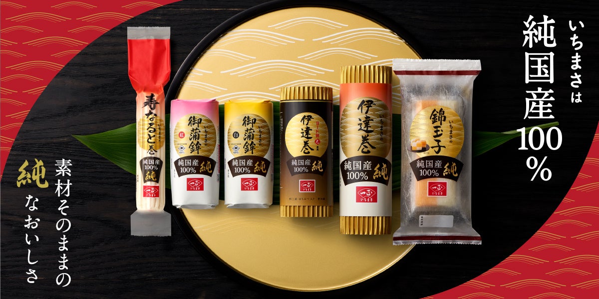 「純国産100% 『純』シリーズ」は、微量な素材まですべて純国産原料を使用しています。素材本来の味を引き出した飽きのこないピュアなおいしさが特長です。「いちまさ」だからできるこだわりの品質で、日本の伝統をお届けします。