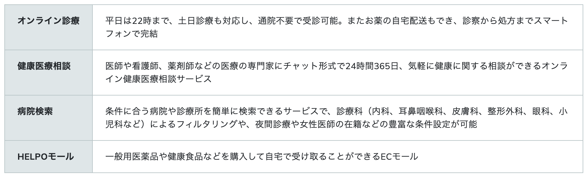 ※「HELPO」はオンライン診療のプラットフォームを提供します。診療は提携先の医療機関が行います。