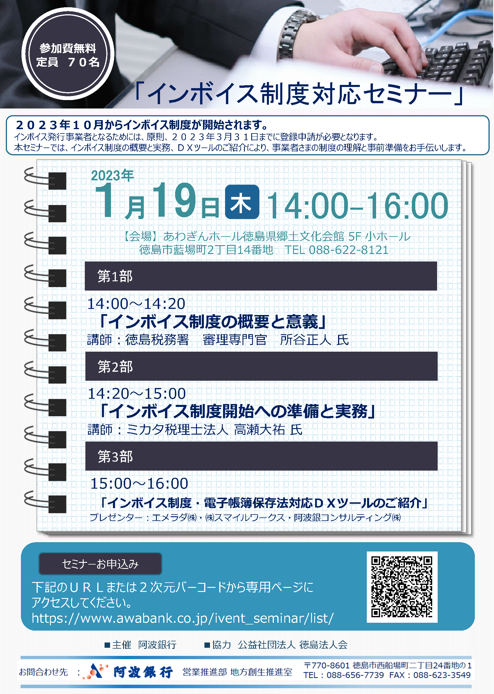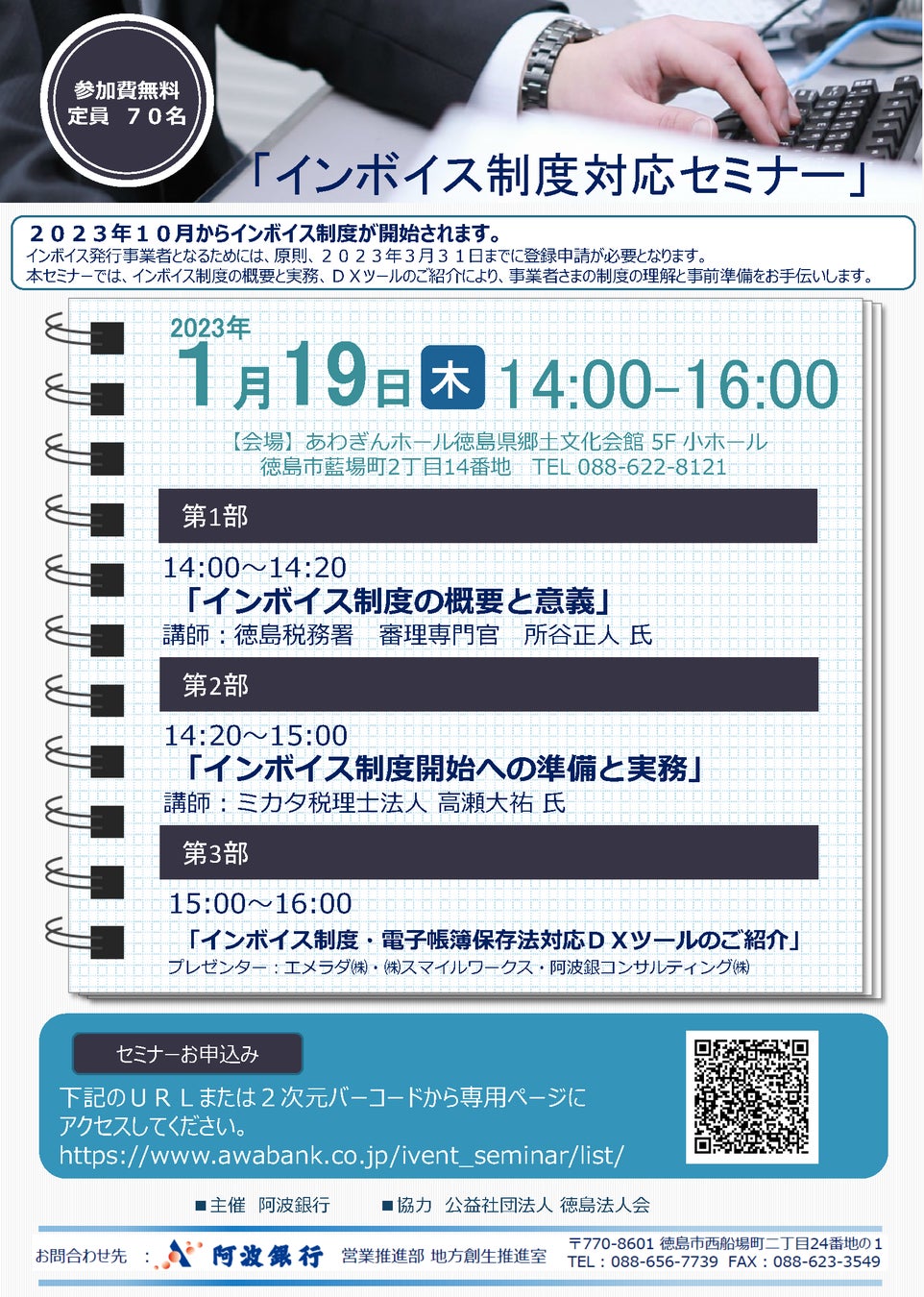 阿波銀行、「インボイス制度対応セミナー」の開催について