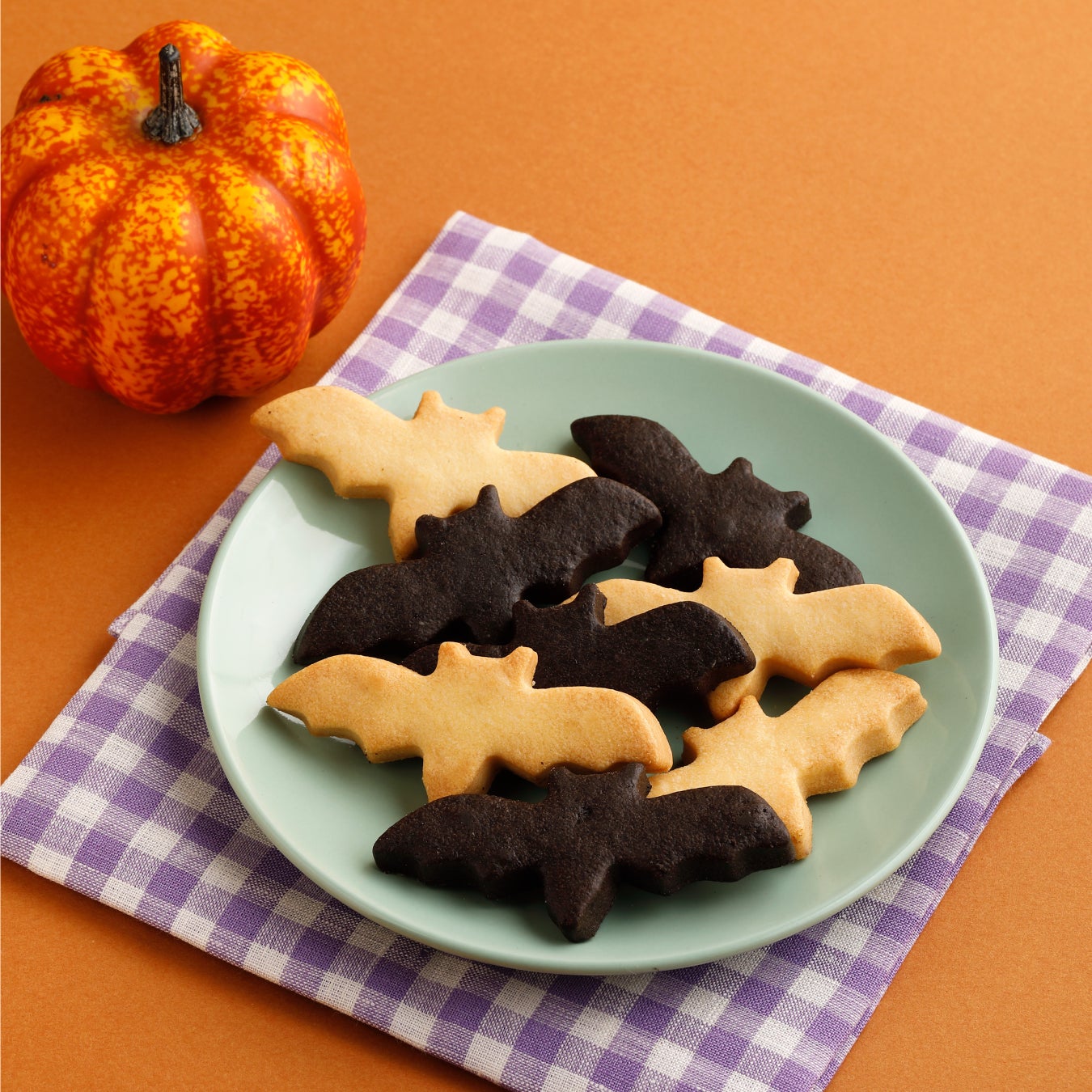 バター香るプレーン生地とほろ苦いココア生地のコウモリ型クッキーです。