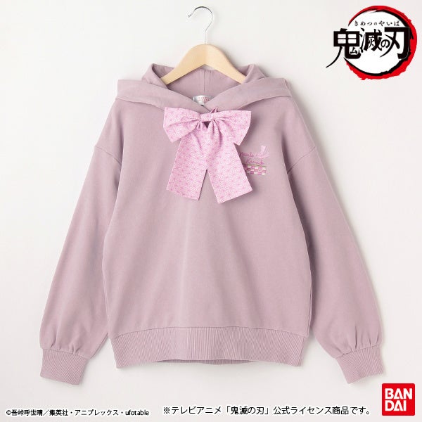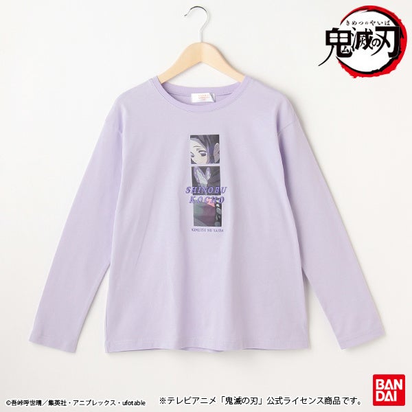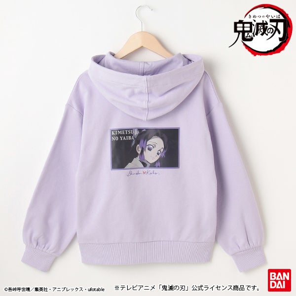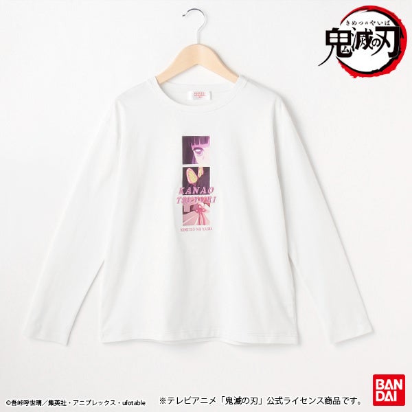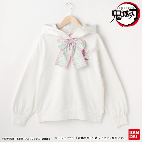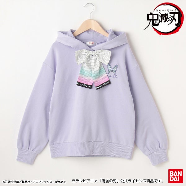 当商品はテレビアニメ『鬼滅の刃』のローティーン女児向けアパレル商品第二弾です。禰豆子・カナヲ・しのぶをメインに起用し、それぞれのキャラクターの特徴をモチーフにデザインしました。第二弾は、プルパーカー・長袖Tシャツ・ソックスの3商品の展開です。