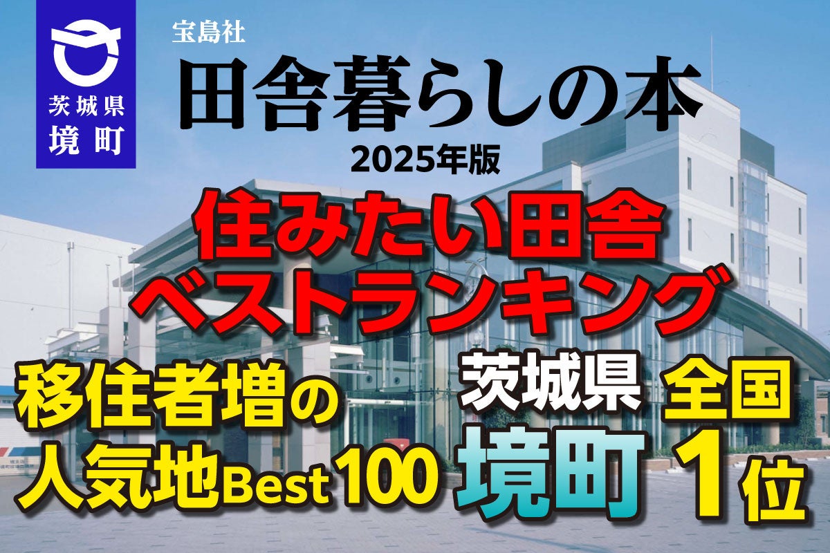 令和7年1月4日(土)発売の月刊誌「田舎暮らしの本」(宝島社)2月号において発表された「2025年版住みたい田舎ベストランキング」「移住者増の人気地ベスト100ランキング(全国)」にて、茨城県境町(町長:橋本正裕)が1位を獲得いたしました