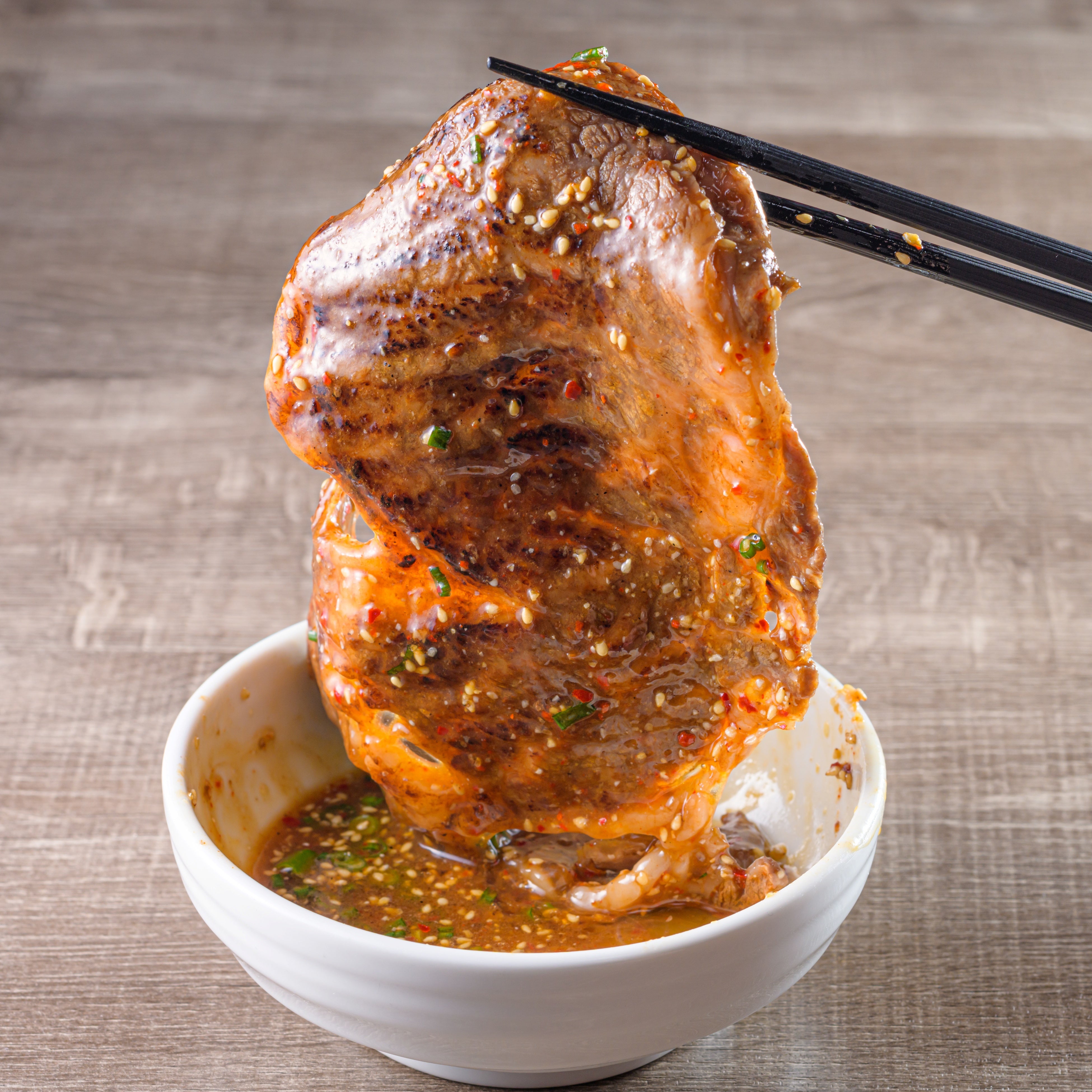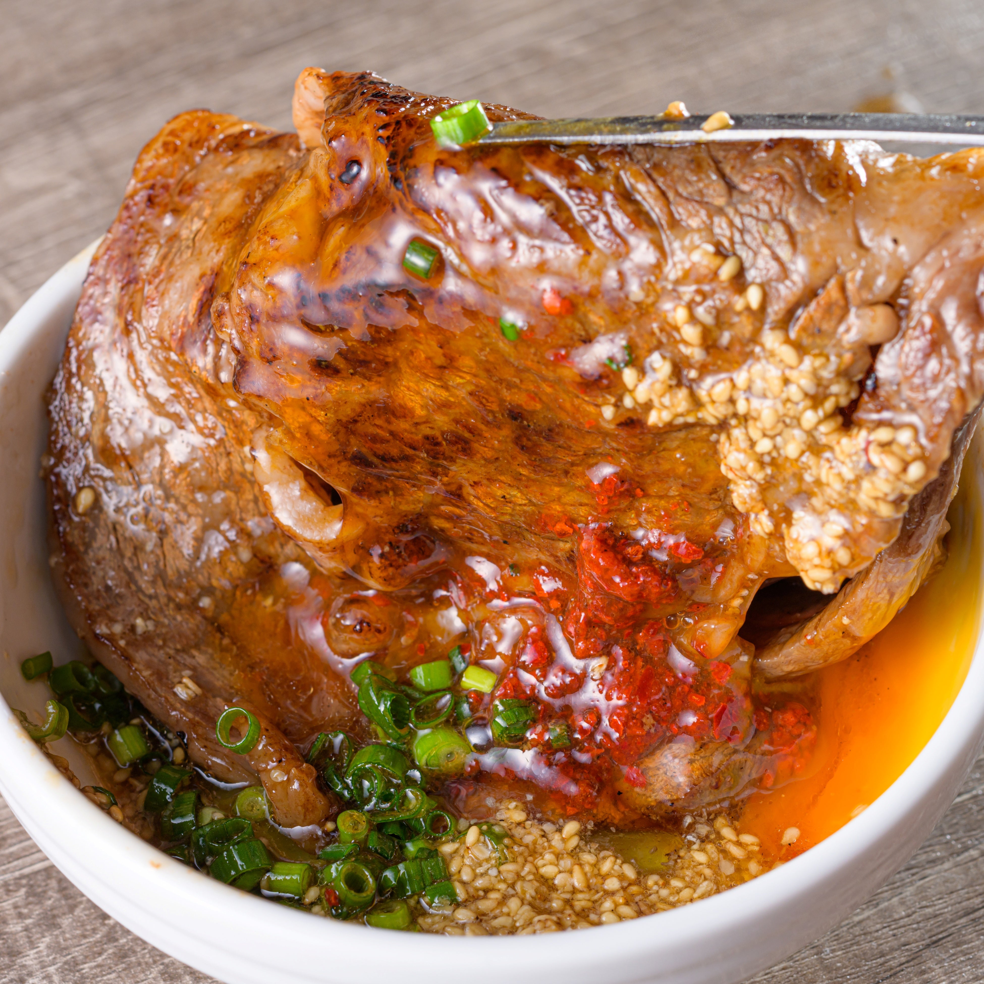 卵黄、ライスボールと一緒に食べる、肉部門の〆として不動の人気を誇る商品。