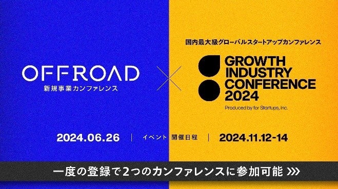 新規事業カンファレンス OFFROAD 2024は、スタートアップエコシステムをより盛り上げるべく、2024年11月に実施される成長産業カンファレンス 2024(英語名:GROWTH INDUSTRY CONFERENCE/通称 GRIC)と、イベントパートナーとして連携いたします。