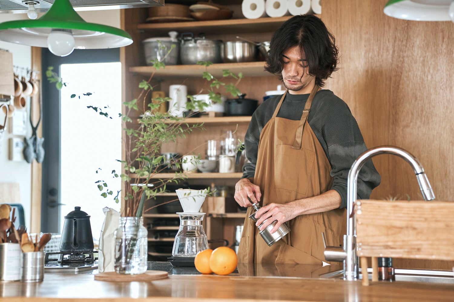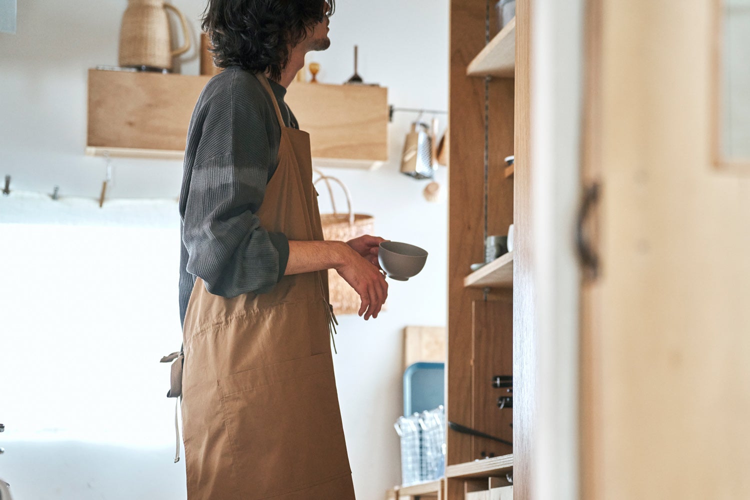 そんな、 “大人の楽しみ” がたくさん詰まった、シンプルでいて使い勝手のよいエプロン。