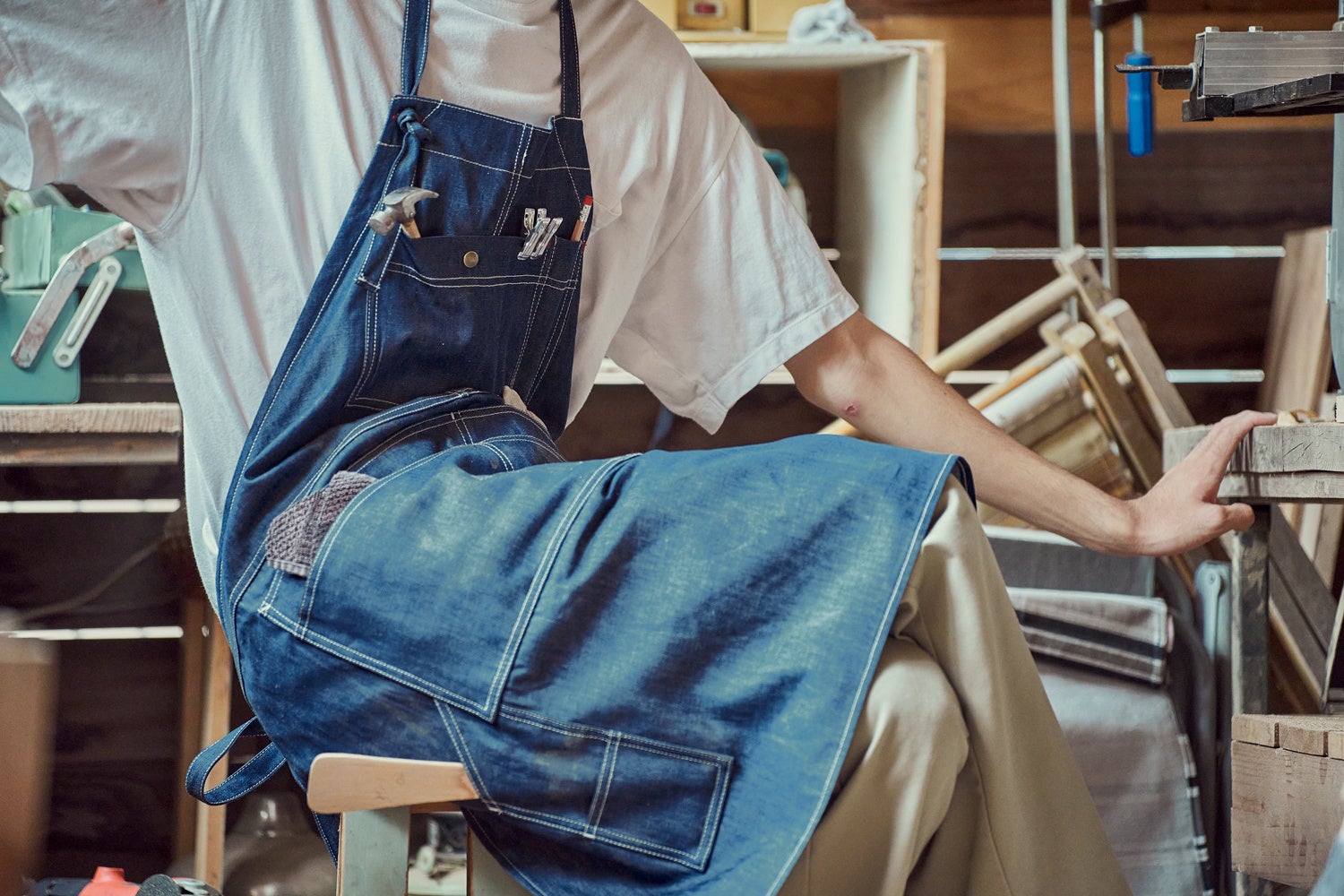 硫化染めの生地が使われているので、使い込んで擦れていくさまが、ヴィンテージエプロンのようでさらに愛着が湧きそうです。