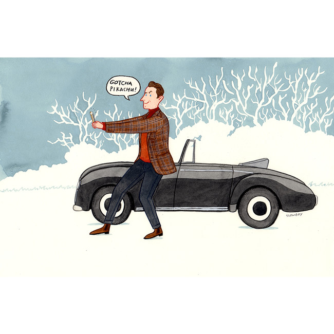 「Slowboy and his overcoat」は、おなじみキャラクターがお気に入りのチェックのコートを着て、パリとロンドンを小旅行します。それぞれのシチュエーションでの着こなしは現実でも参考になります。オリジナルはドレイクスの2017年秋冬シーズン用に描かれた作品です。