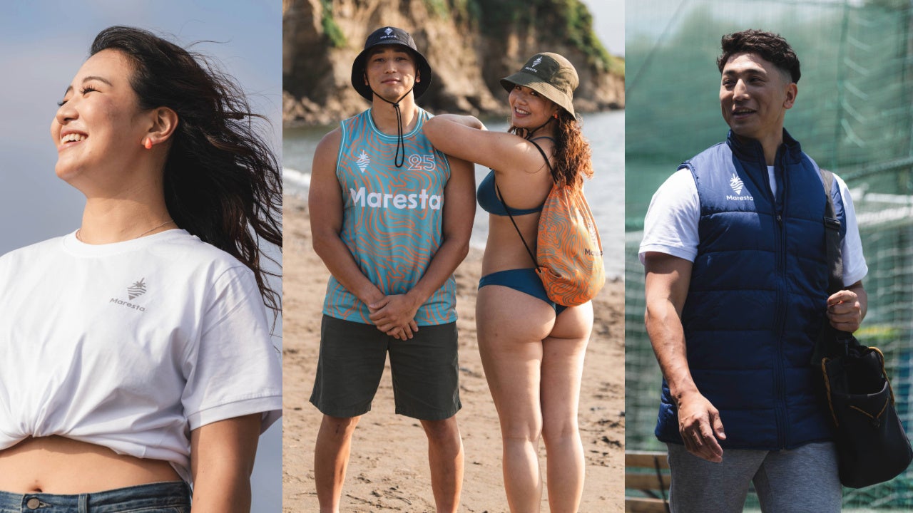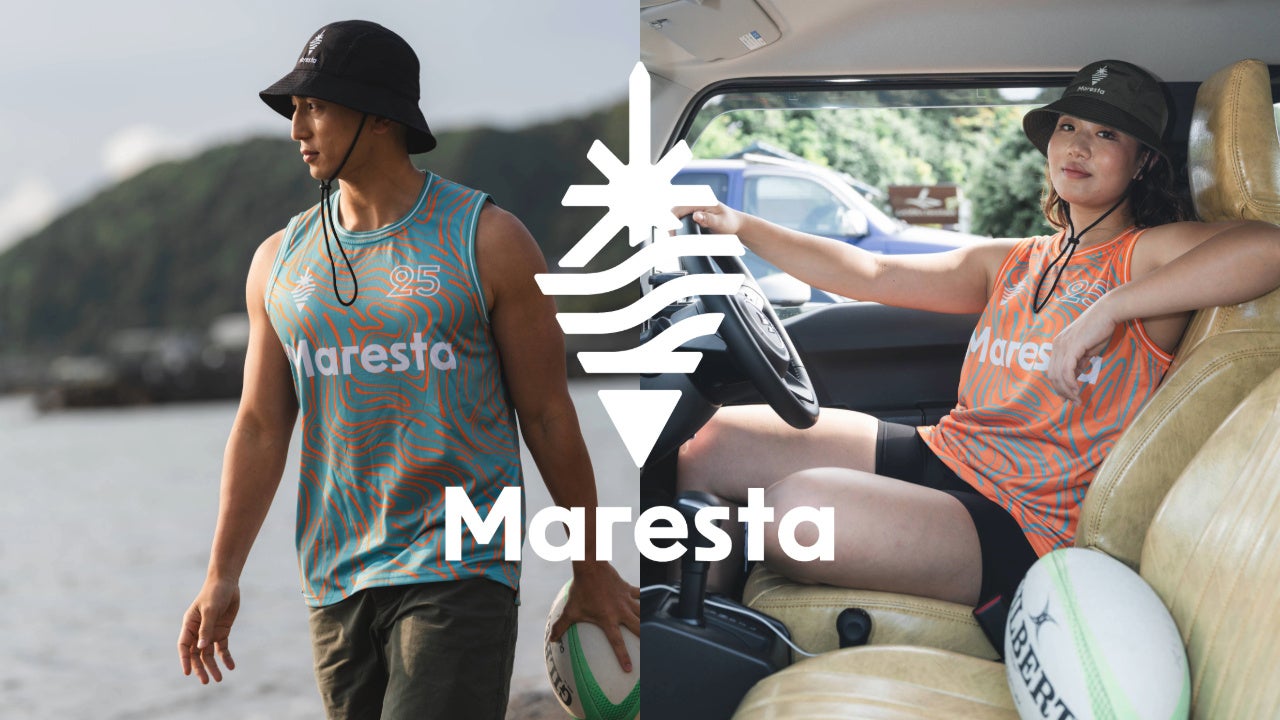 Marestaは、6月21日に誕生したスポーツライフブランド。おでかけや運動中問わずおしゃれに着られるラインナップを用意する他、ラグビーを始めとしたスポーツチームのウエアデザインを依頼することも可能。