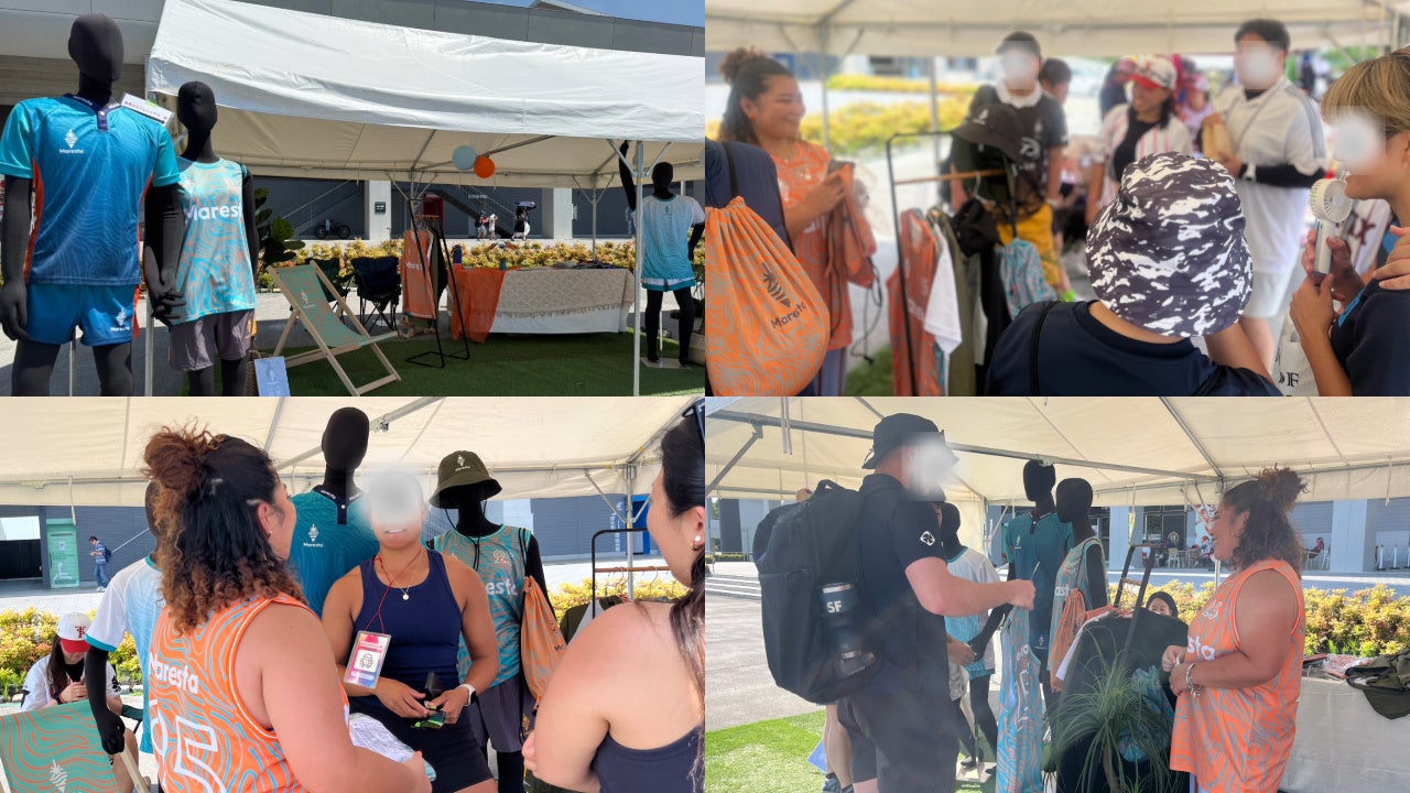 大会が行われた熊谷運動公園ラグビー場にて、6/21(土)&6/22(日)にポップアップを開催。大会の応援に来ていたラグビーファンや東京山九フェニックスOGの他、大会参加中の相手チームの選手や練習帰りの男子ラグビー選手など合わせ100名以上が訪れた。特に目を引いたのは岸本彩華選手もポップアップで着用していたオレンジと水色のシングレッド。通りがかったラグビーファンも思わず足をとめ、手にとる姿が印象的だった。