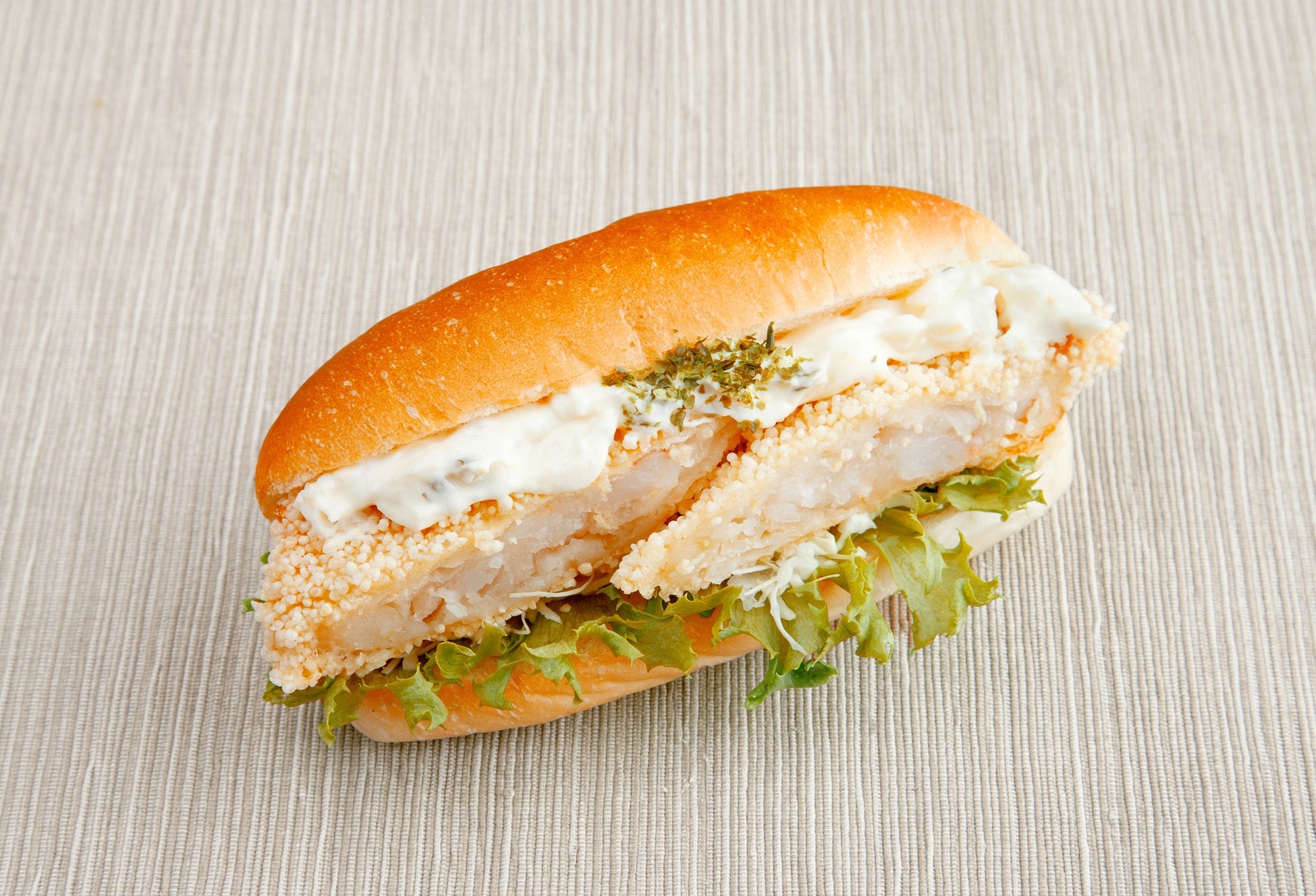 湯葉で巻いたえびしんじょうにお米あられをつけて揚げ、具だくさんのタルタルソースと一緒にサンド。えびのぷりっとした食感が楽しめる1月限定のお正月コッペ。